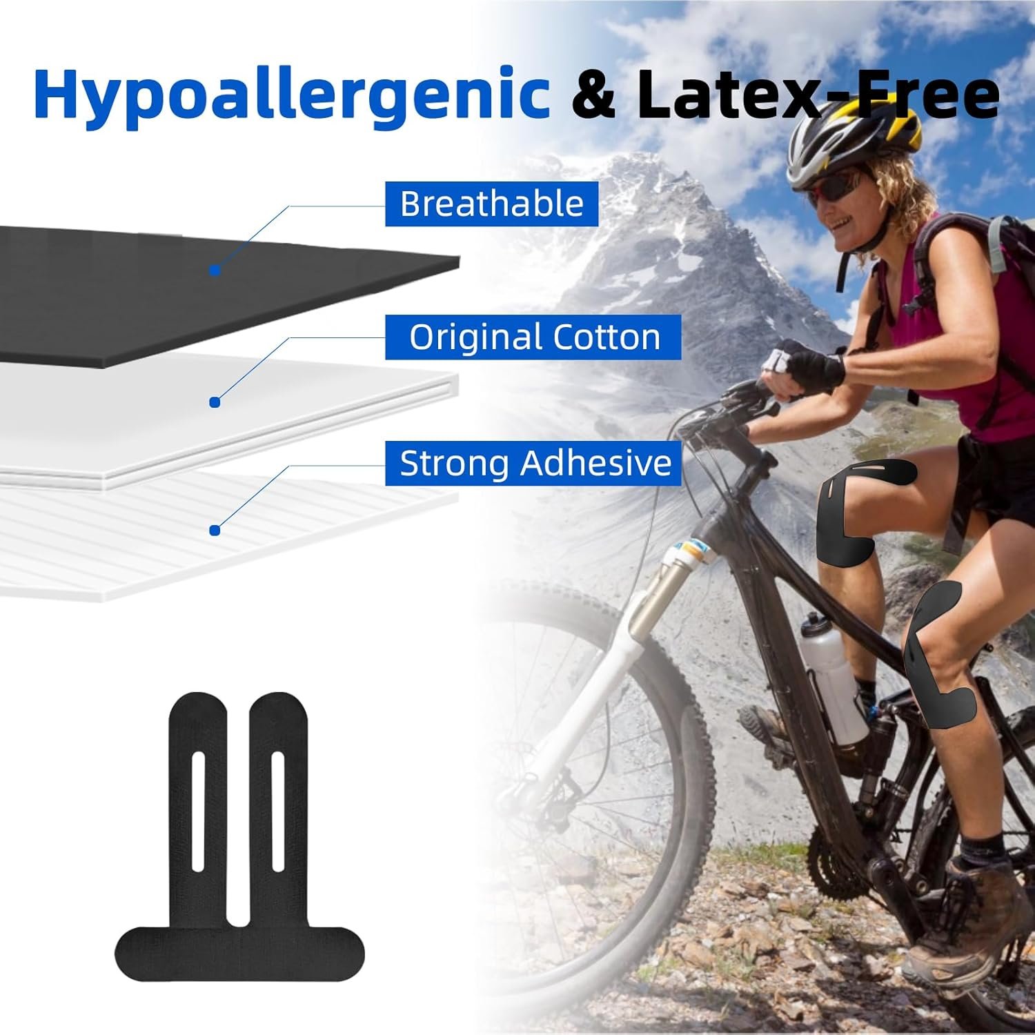 IEADEN Precut Kinesiology Tape for Knees, 10 Pcs – Knee Support & Stability, Knee Pain Relief Athletic Tape – Waterproof & Elastic, Breathable Hypoallergenic Latex-Free Tape, Black