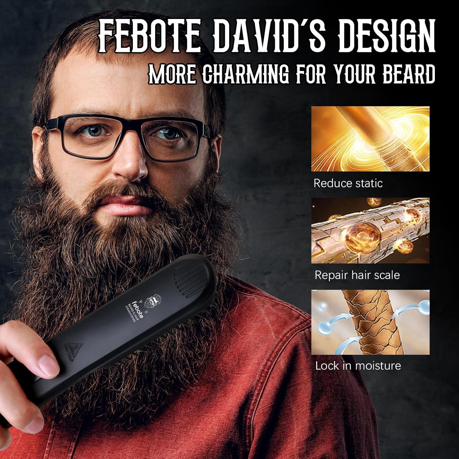 The video showcases the product in use.The video guides you through product setup.The video compares multiple products.The video shows the product being unpacked. febote Beard&Hair Straightener for Men Merchant Video