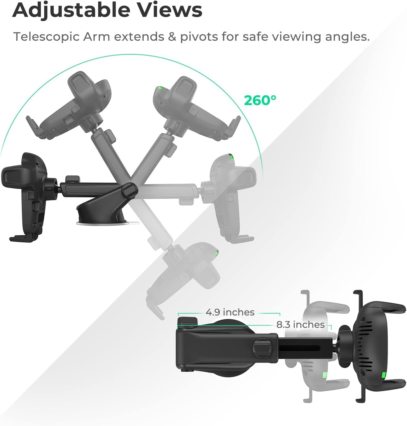 Adjustable Bottom Foot: The foot of the mount can be raised and lowered to accommodate phones of various sizes. This helps to align the Qi coils for an efficient charging experience.