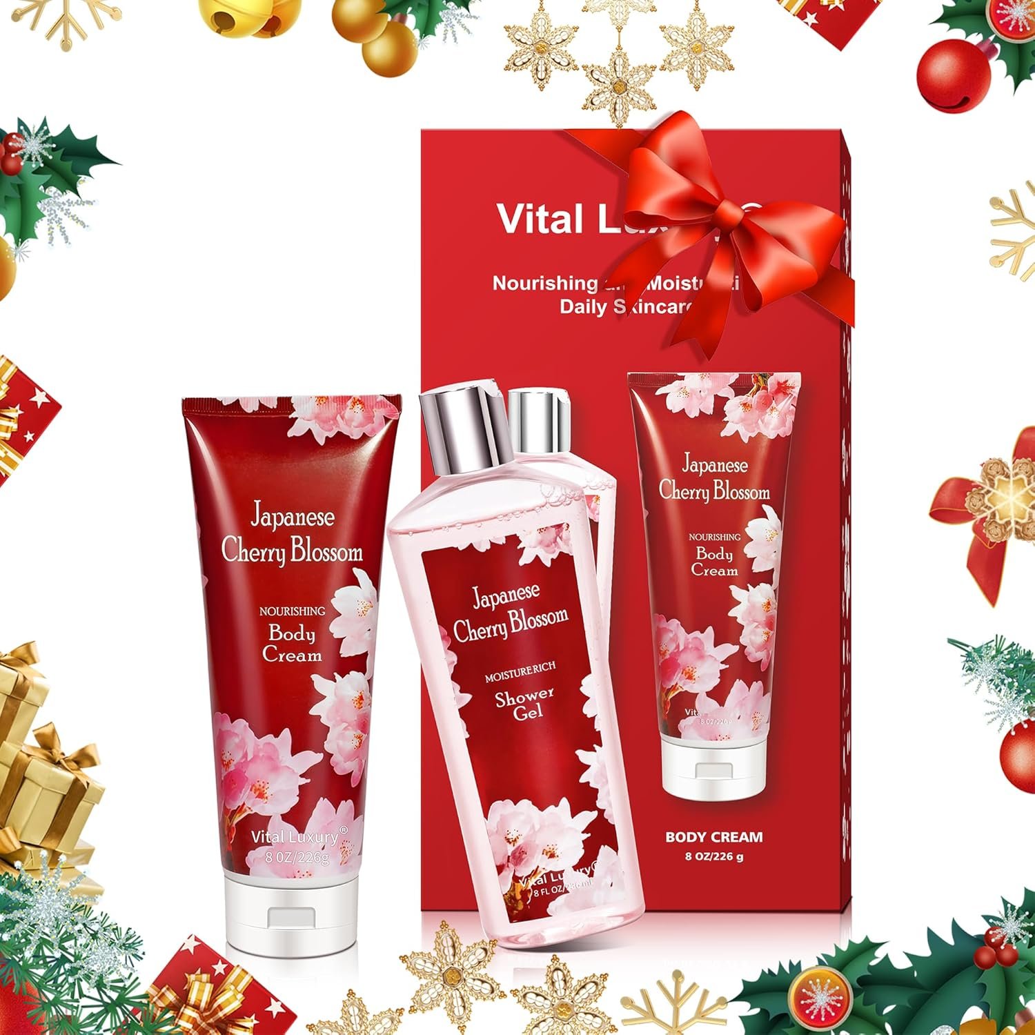 Captivating Japanese Cherry Blossom Experience: Indulge in the authentic fragrance of handpicked Sakura blossoms, blending fresh floral notes with subtle woody undertones. The shower gel and body cream transport you to a serene Japanese garden, leaving a delicate, long-lasting scent that lingers for hours.