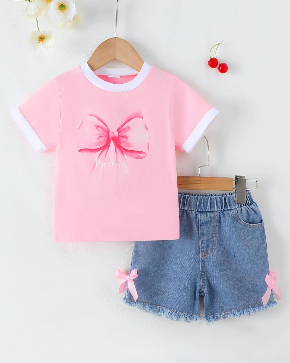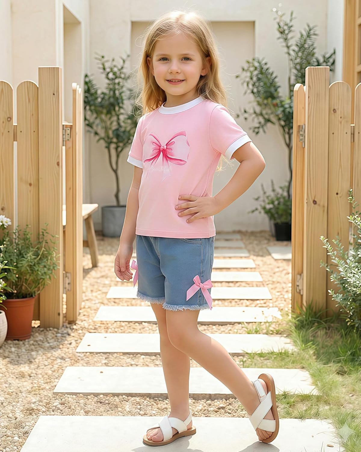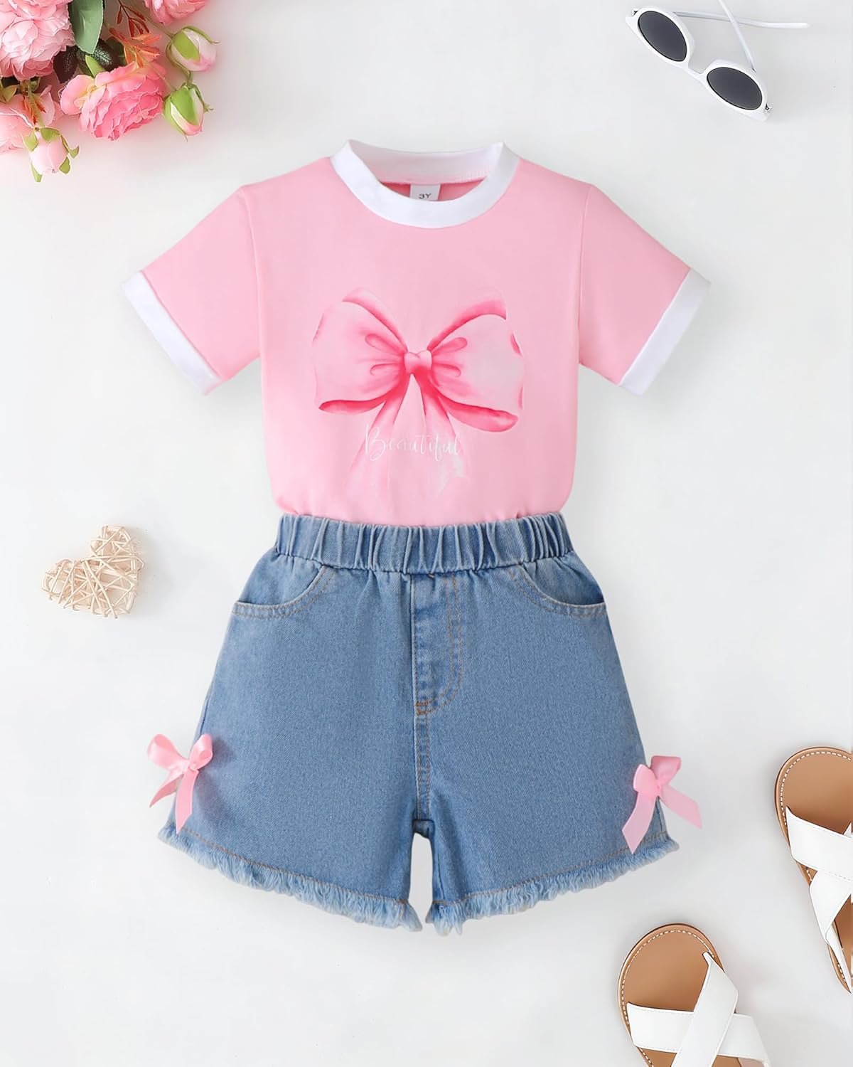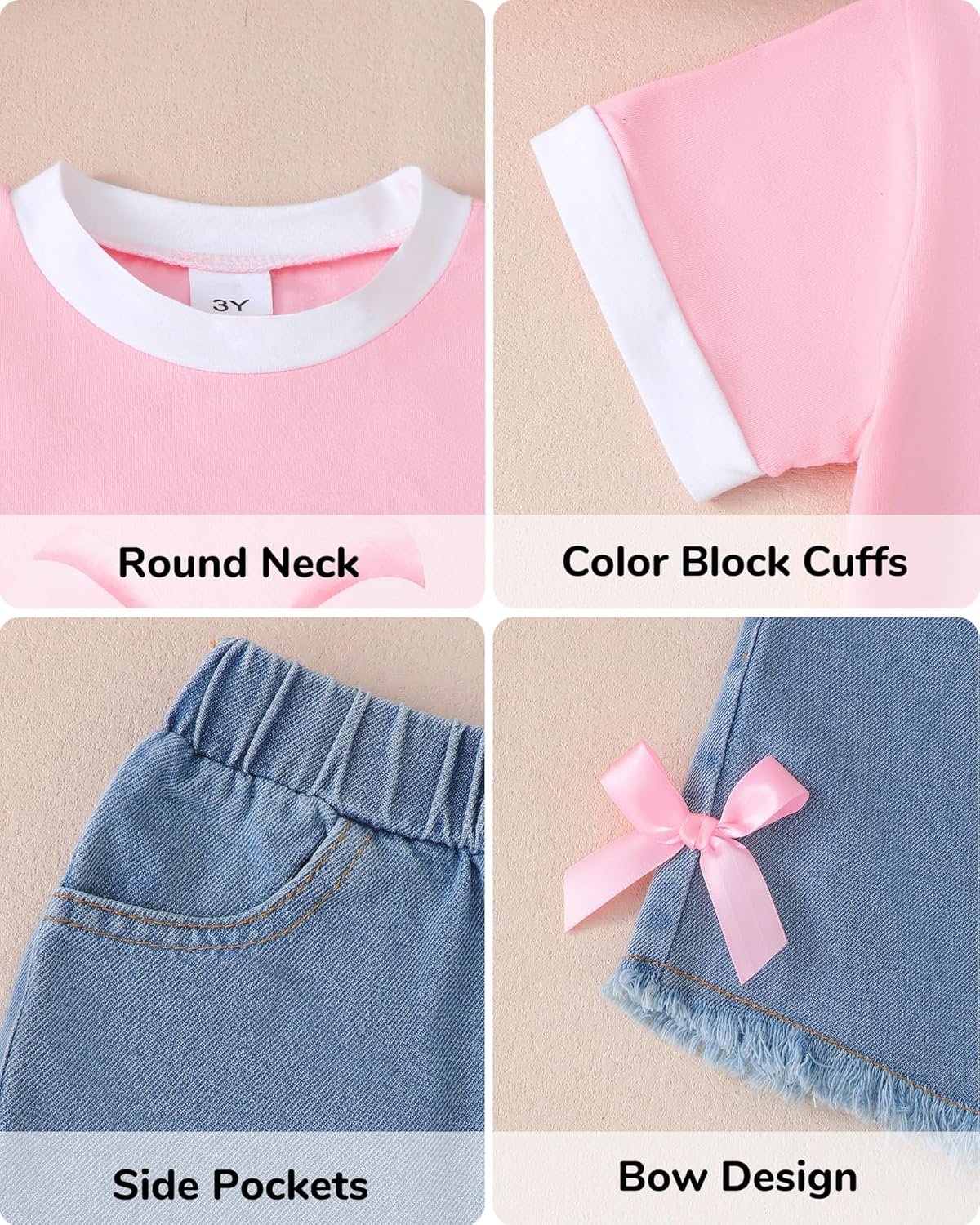Jecson Toddler Girl Clothes Summer Cotton Print T-Shirt and Jeans Shorts Set Casual Girls 2 Piece Outfits Sets 2T-8Y