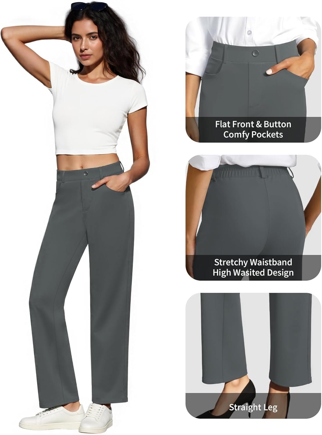 JEKAOYI Womens Dress Pants Stretchy Work Pants High Waisted Business Trousers Pull On Casual Slacks with Pockets
