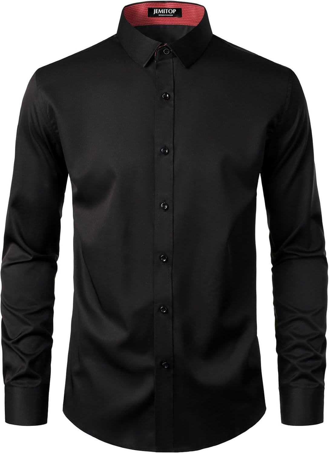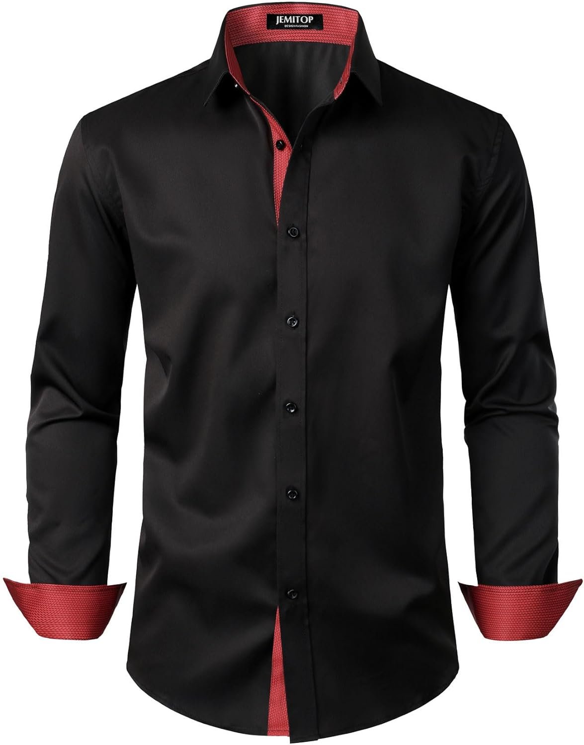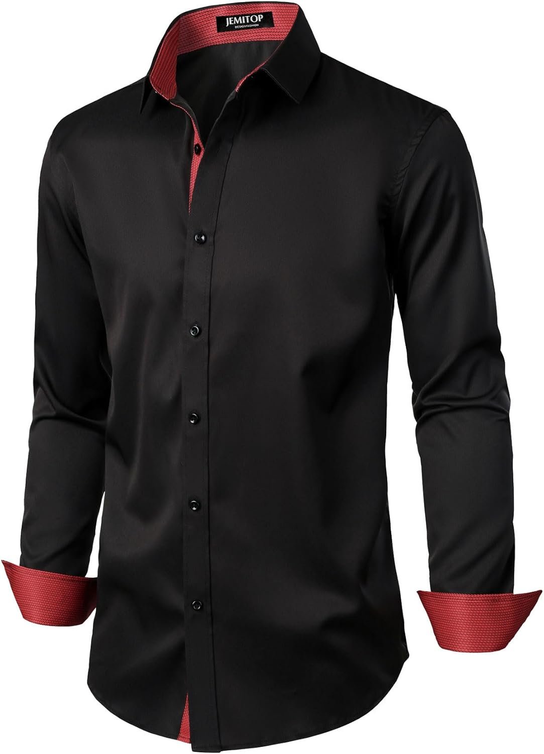 JEMITOP Men’s Stretch Multi-Use Long Sleeve Dress Shirts Party Prom Wedding Shirts with Slight Sheen