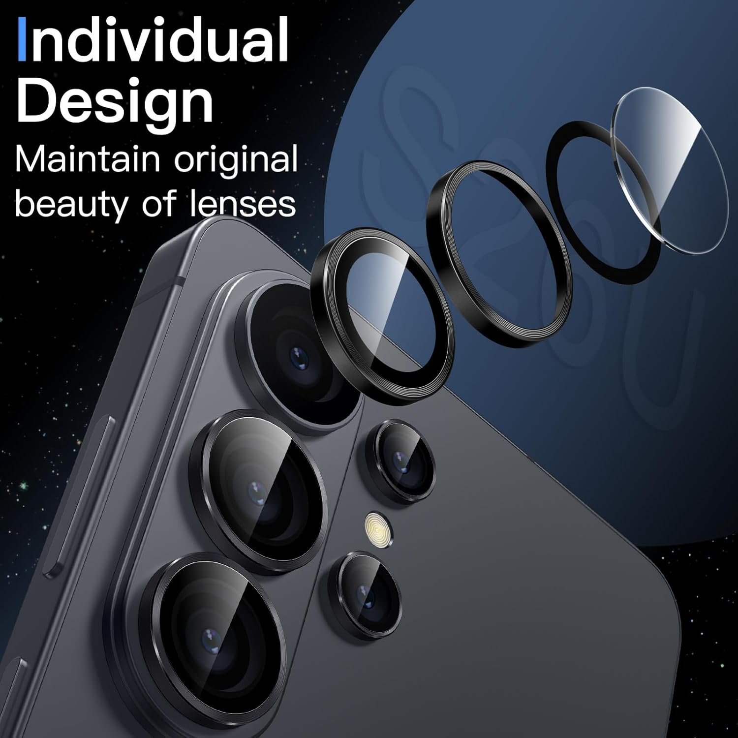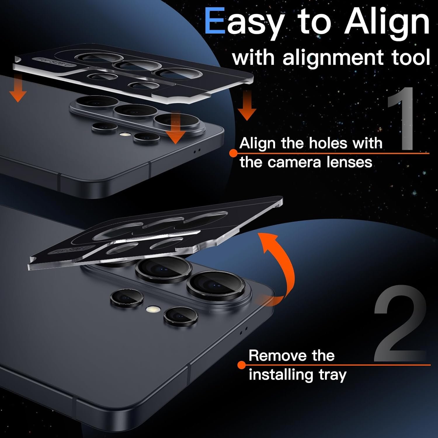 [Easy Installation] The lens protectors are preset in an easy installation tray. Simply peel off the plastic plate, align and firmly press down the lens protectors to the camera lenses, and then remove the tray