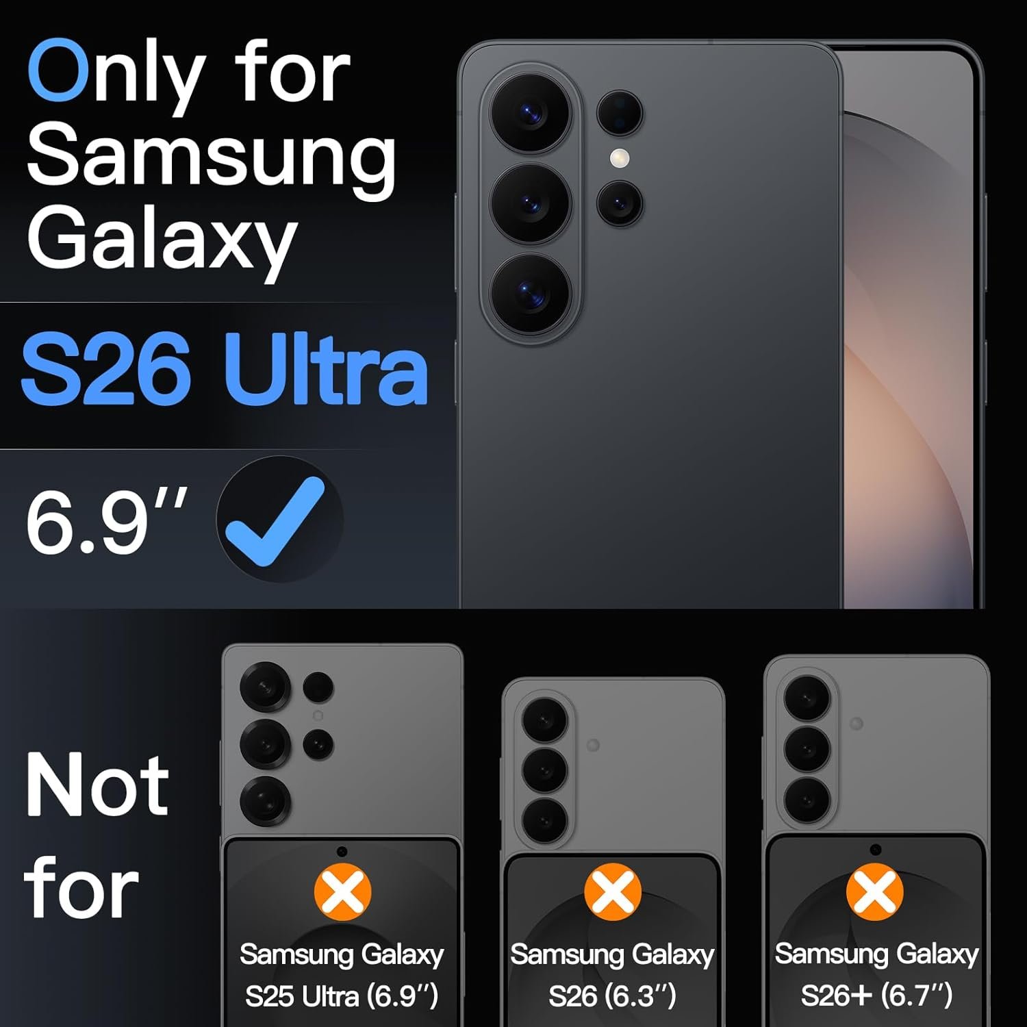 [Compatibility] Precisely fit for Samsung Galaxy S26 Ultra. NOTE: Not for Samsung Galaxy S25 Ultra / S26 / S26+ / S26 Plus. Provides seamless camera lens coverage, shielding against dust and water. Compatible with most phone cases