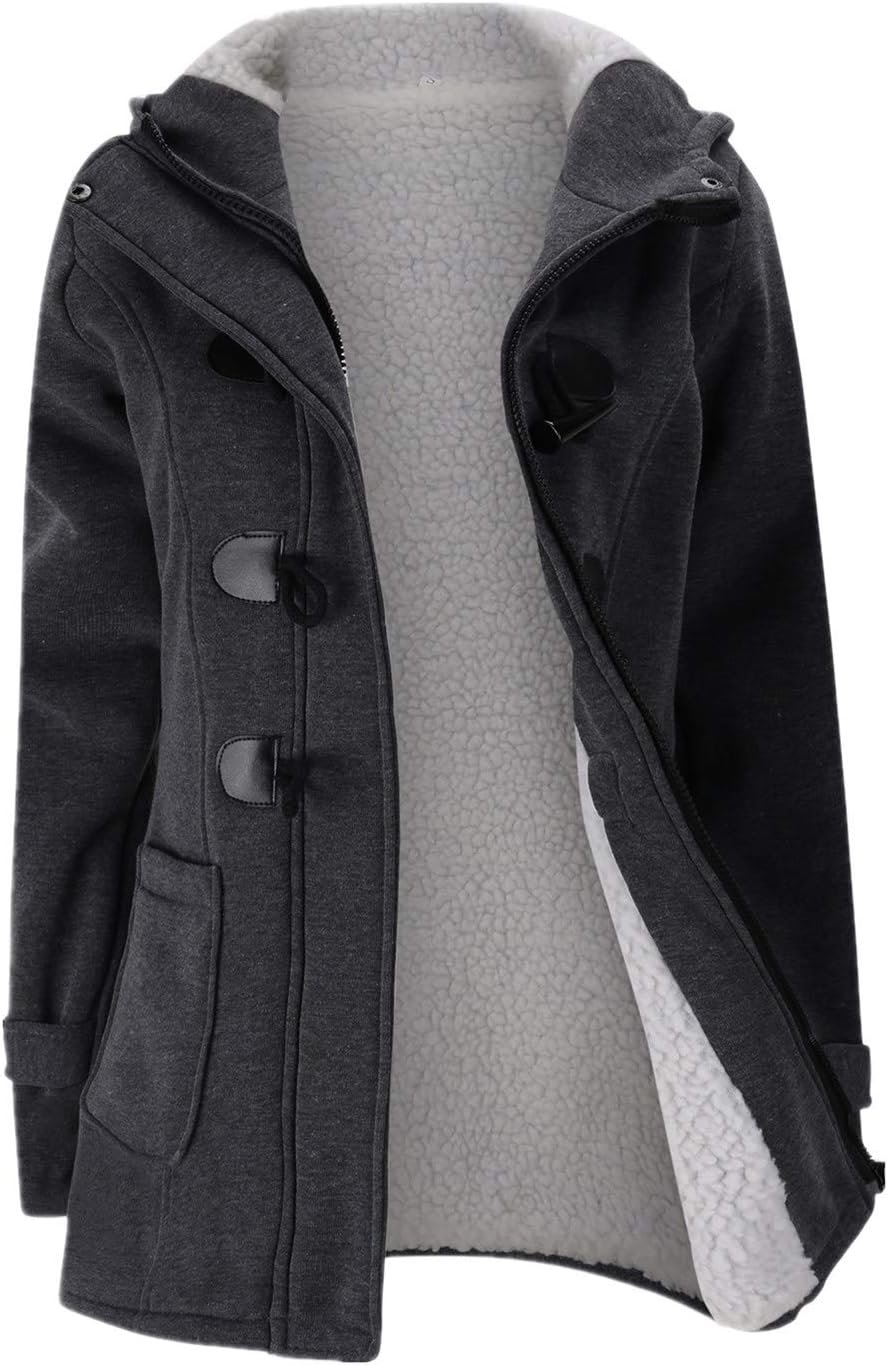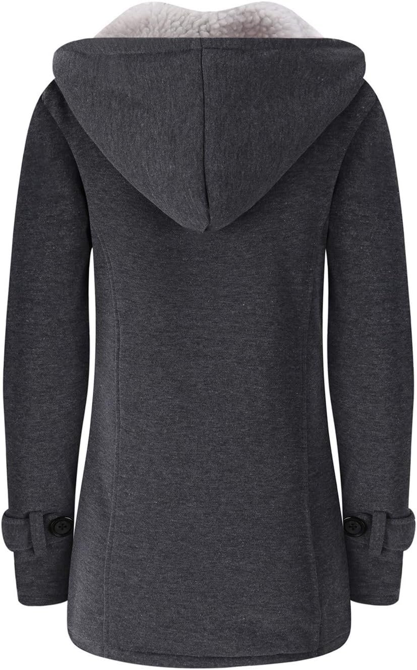 JiangWu Womens Fashion Horn Button Fleece Thicken Coat with Hood Winter Warm Jacket