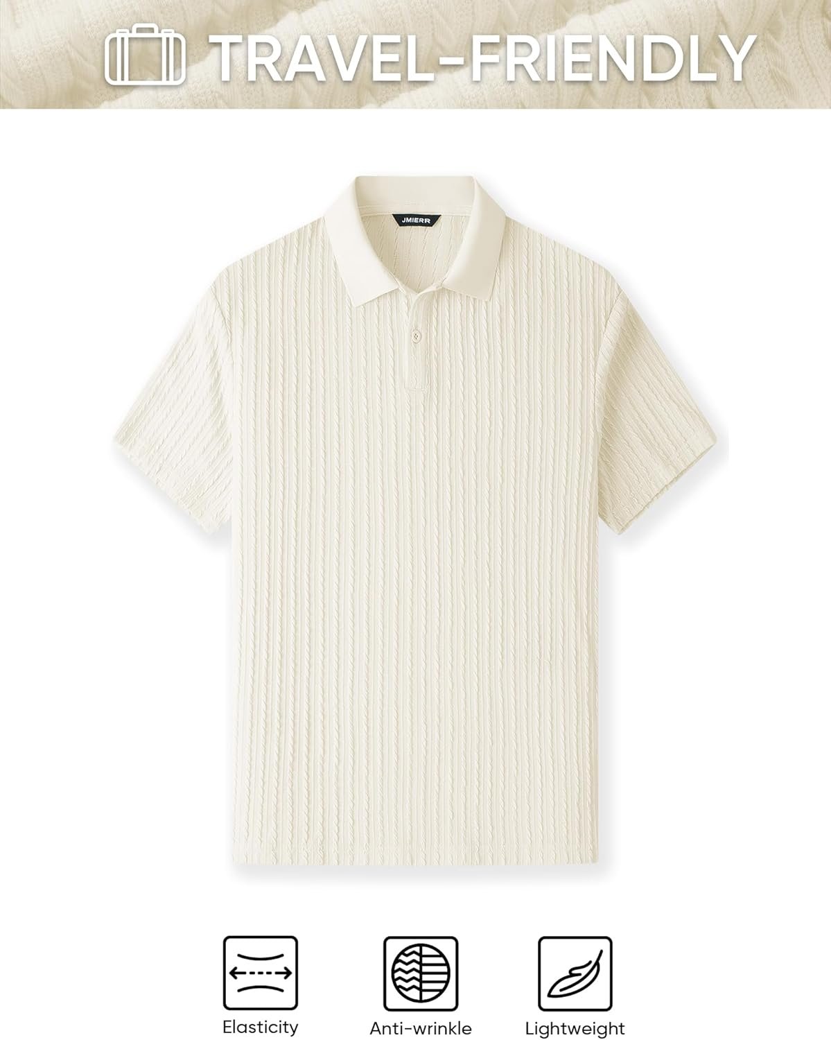 JMIERR Mens Casual Polo Shirt Summer Short Sleeve Vacation Button Beach Knit Stretchy Golf Shirts