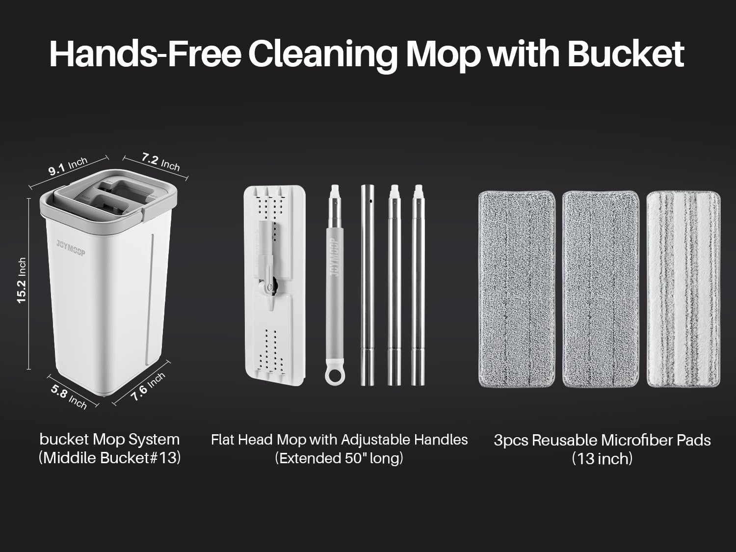 JOYMOOP Mop and Bucket with Wringer Set, Hands Free Flat Floor Mop and Bucket, with 3 Washable Microfiber Pads, Wet and Dry Use, Floor Cleaning System