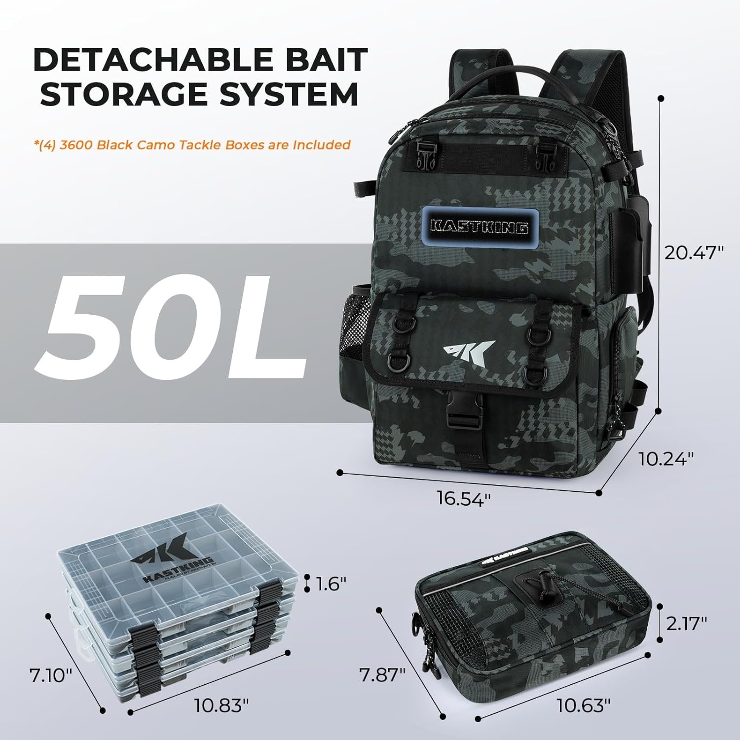 KastKing BaitSpace 50L Fishing Tackle Backpack with Removable Bait Binder,2 Rod Holders Storage Fishing Gear and Equipment