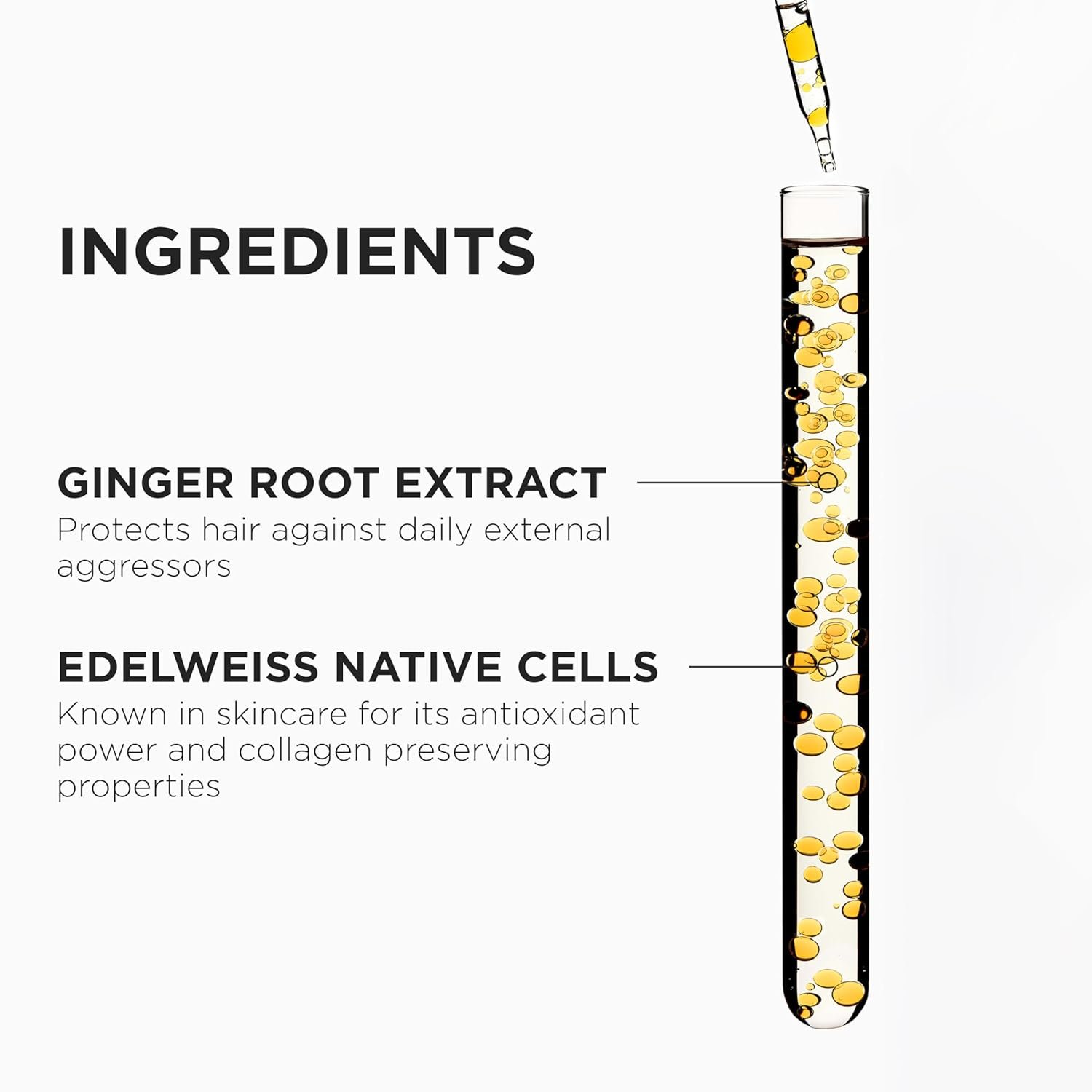 Edelweiss Native Cells & Ginger Root: Detangle, moisturize, and increase strength and softness.