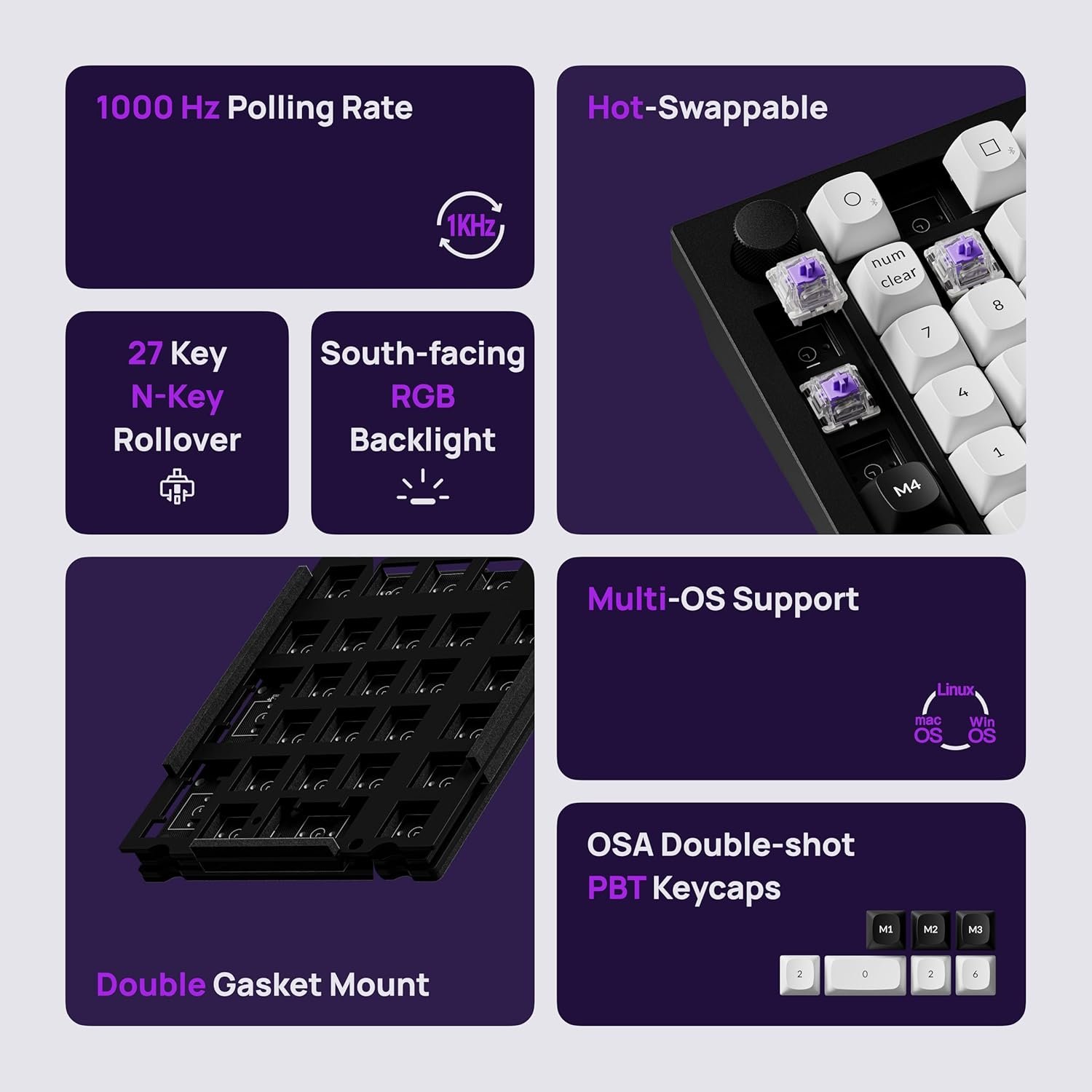 Hot-Swappable & Built to Last: Pre-lubed Gateron Double-Rail Magnetic switches offer hot-swap capability and precise actuation customization with 0.1 mm sensitivity, adjustable from 0.2 to 3.8 mm (Compatible with Gateron Double-Rail Magnetic switches only). Built to last with a full CNC aluminum body and durable OSA PBT keycaps for a premium feel.