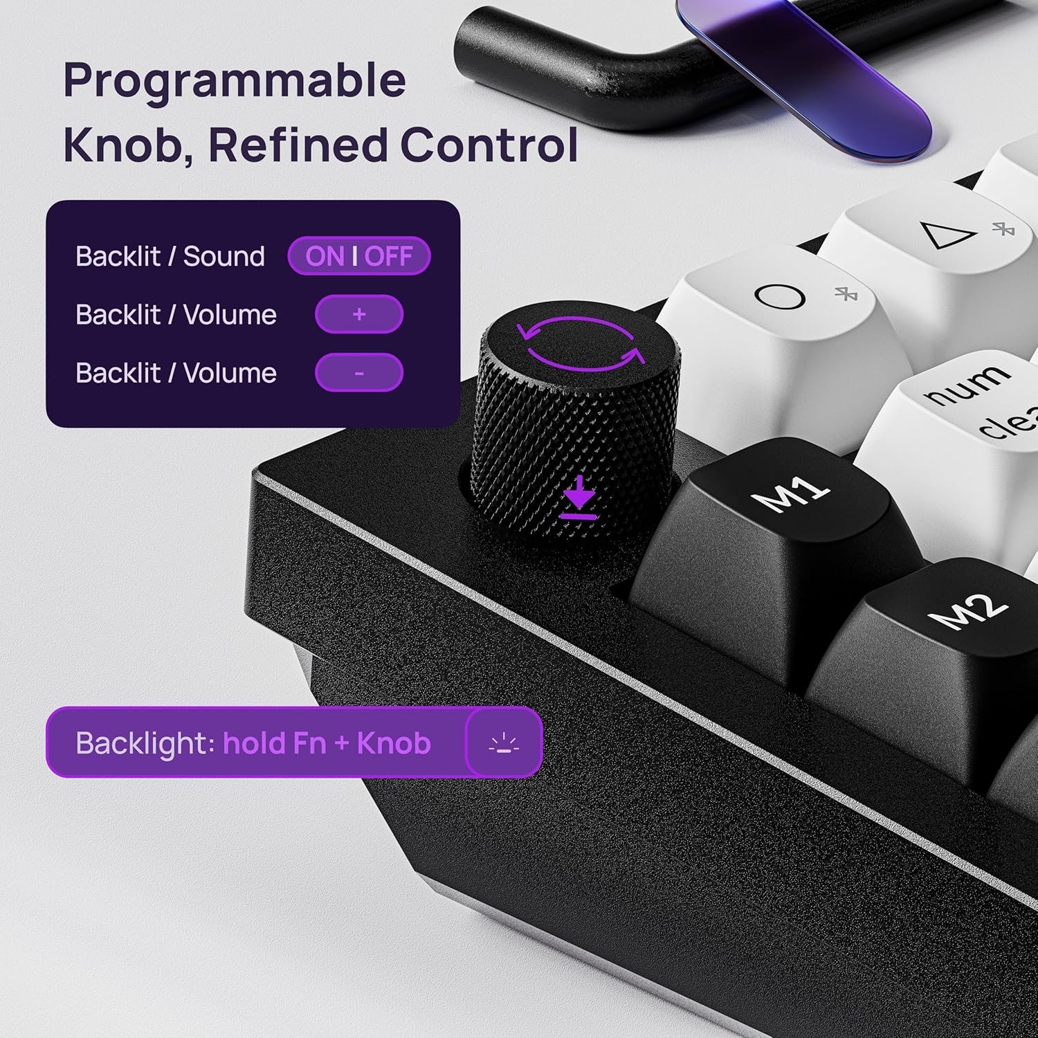Wireless Magnetic Switch Numpad: The Keychron Q0 HE is a custom number pad equipped with magnetic switches, a macro column and rotary knob. With the Gateron double-rail magnetic switch offering rapid triggering and adjustable actuation points, you can experience unparalleled speed in data entry and competitive games like FPS or osu!.