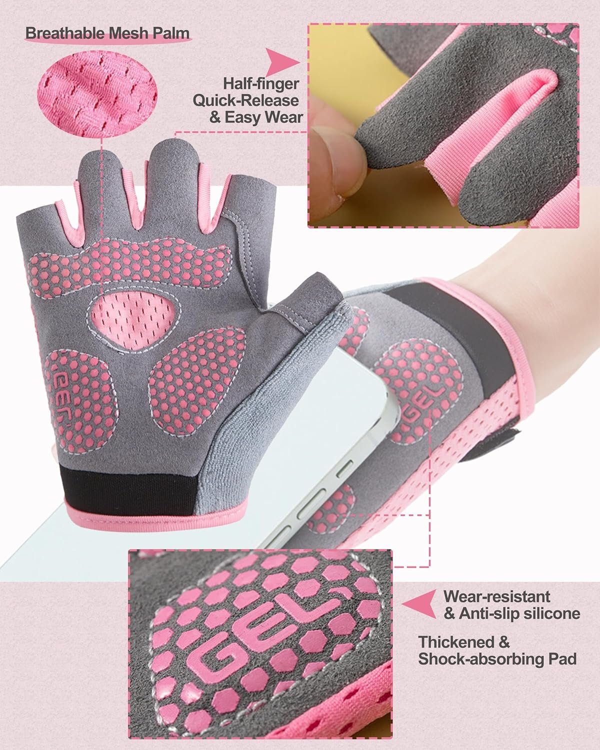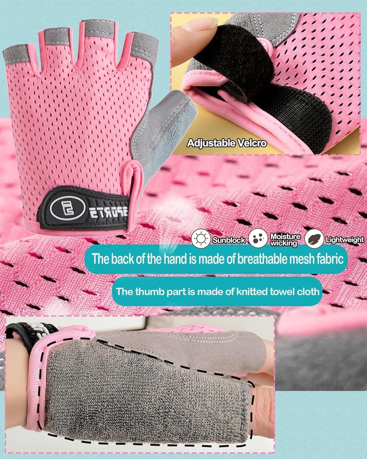 Kids Fingerless Cycling Gloves Non-Slip Bike Gloves for Youth Girls Boys 3-14T, Breathable Gloves for Skating Scooter