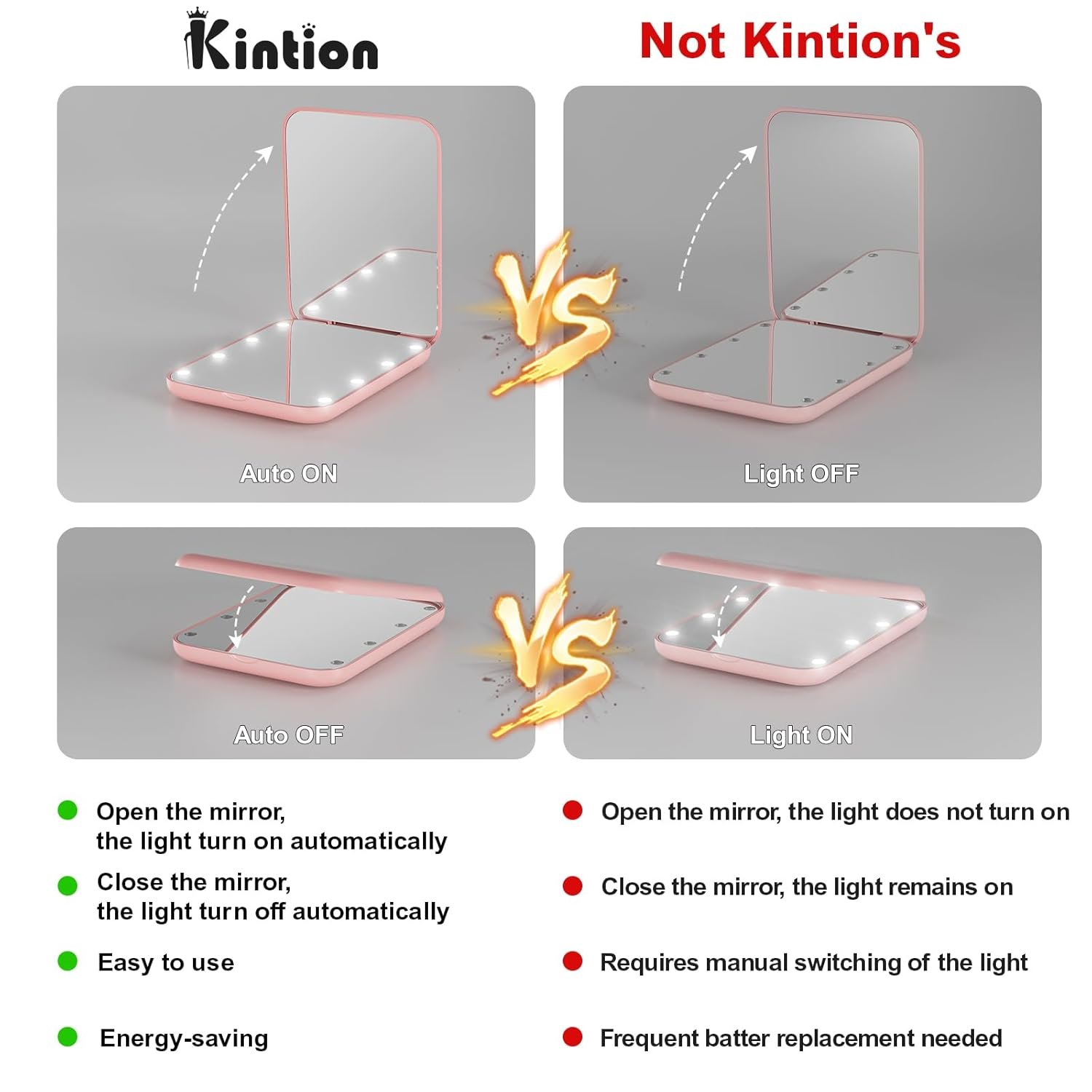 Be the first to review “Kintion Pocket Mirror, 1X/3X Magnification LED Compact Travel Makeup Mirror with Light for Purse, 2-Sided, Portable, Folding, Handheld, Small Lighted Mirror for Gift, Pink”