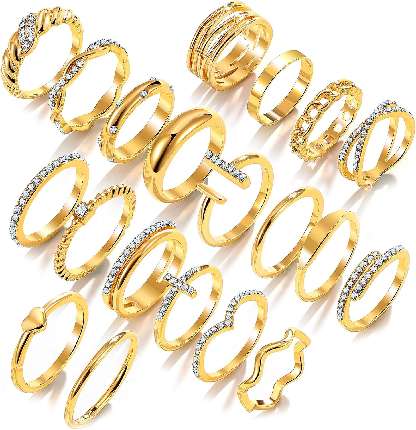 Set contains 20 rings in a variety of styles and a mix of sizes. They can be worn individually or stacked on different fingers. So that you can wear your ring every day without repeating it.
