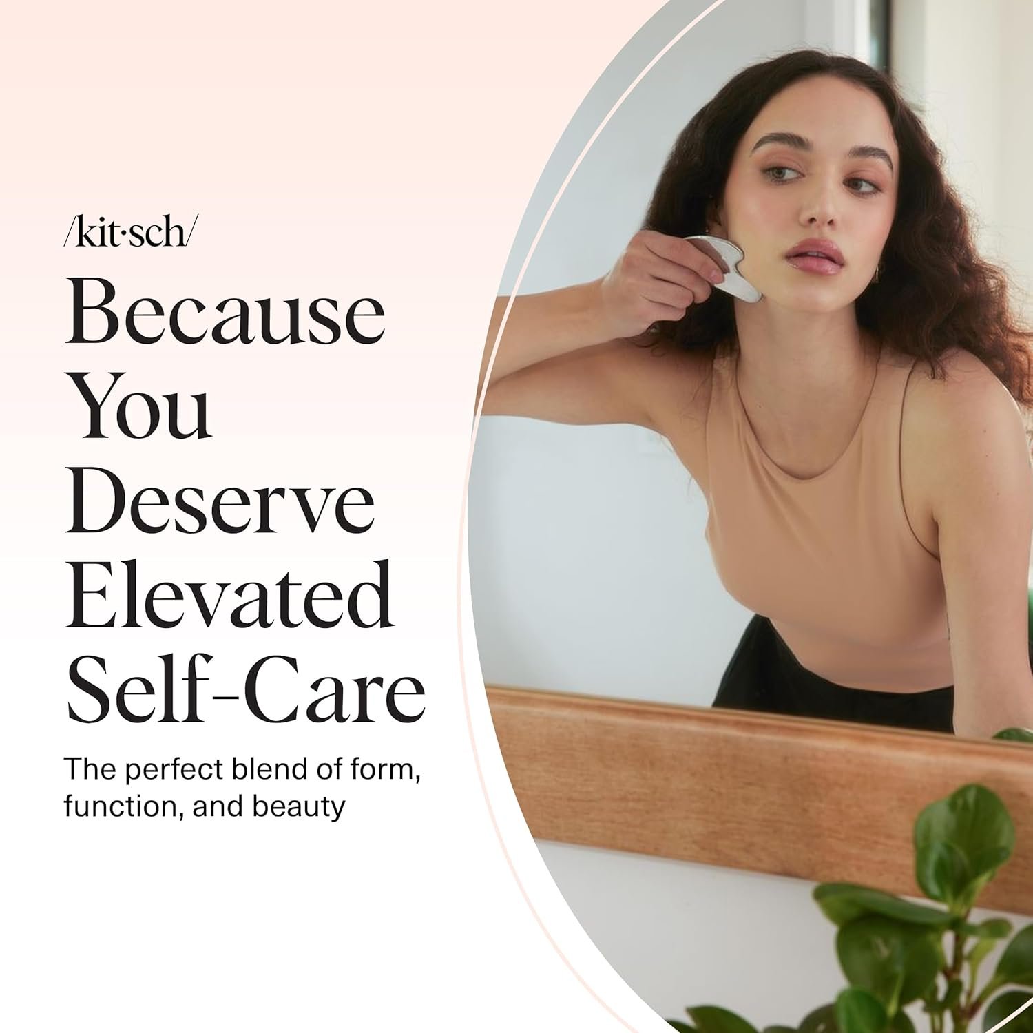 Kitsch Stainless Steel Gua Sha Facial Tools – Guasha Tool for Face, Face Sculpting Tool, Jawline Shaper, Double Chin Reducer, Body Gua Sha Tools, Lymphatic Drainage Massager, Facial Skin Care – Silver