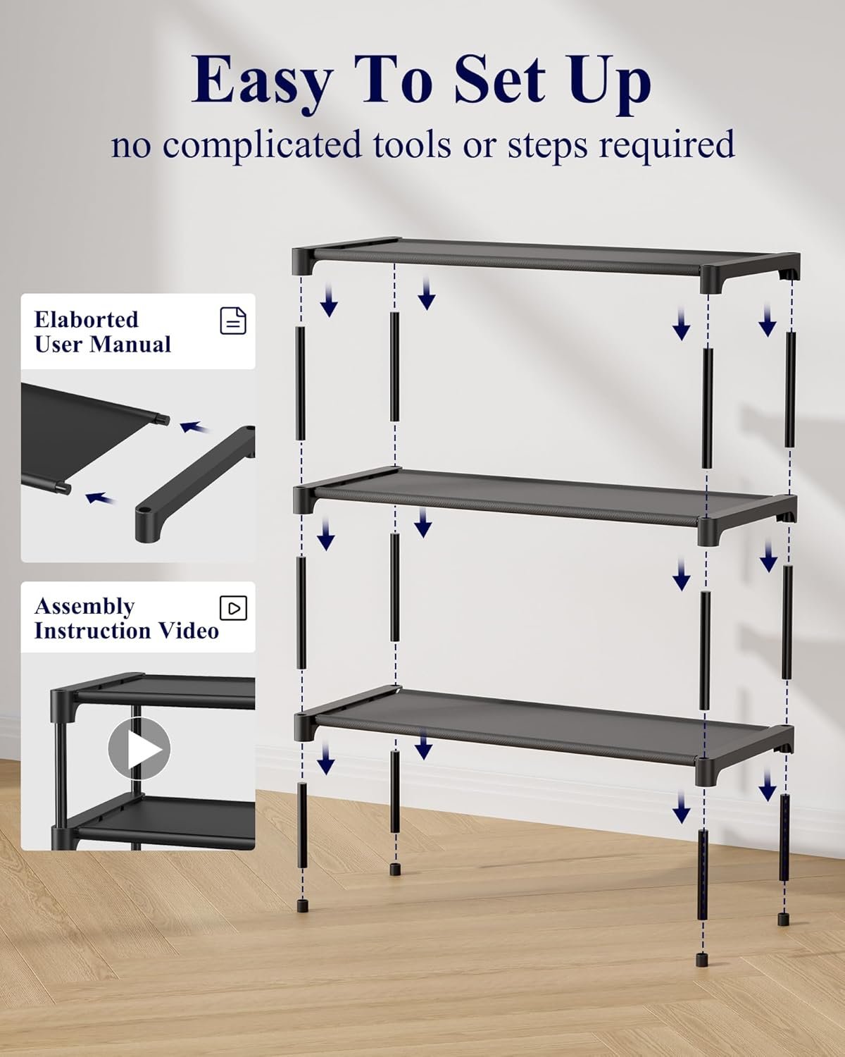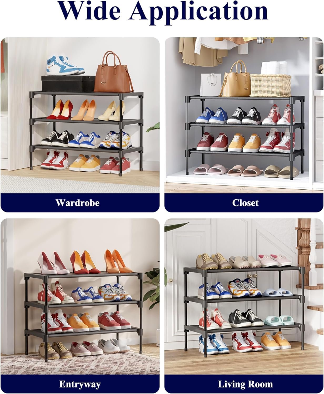 Kitsure Shoe Rack – Non-Woven Shoe Rack Shelf, Shoe Organizer for Closet, Entryway, Garage & Corridor, Stackable Shoe Shelves, 27.5″ Wide – 3 Tier, Black