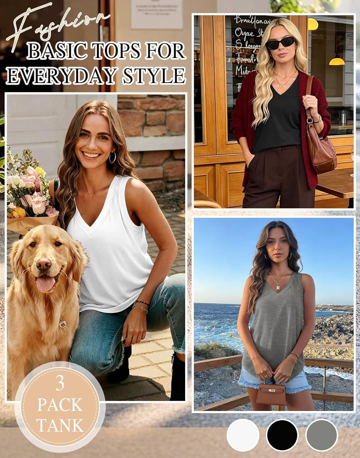 KKJ 3 Pack Womens Tank Tops 2026 Spring Summer Vacation Outfits V Neck Loose Sleeveless Blouse Casual Shirts Fashion Clothes