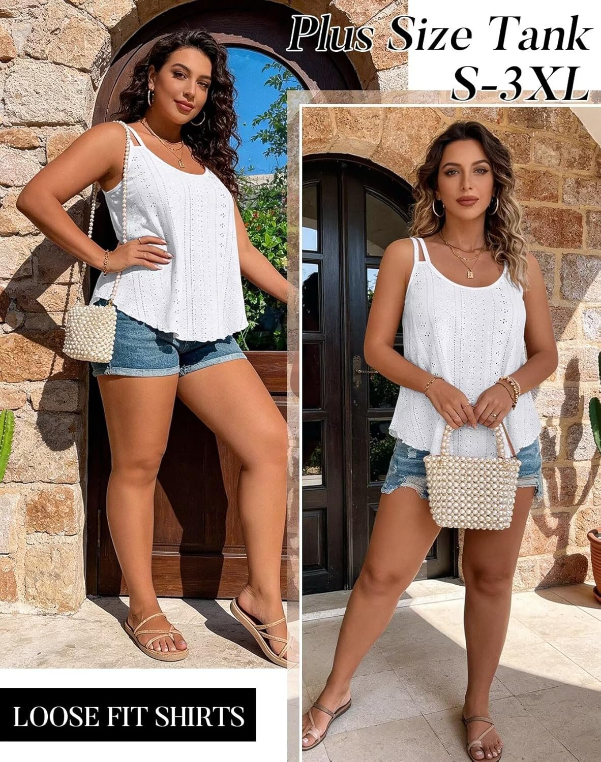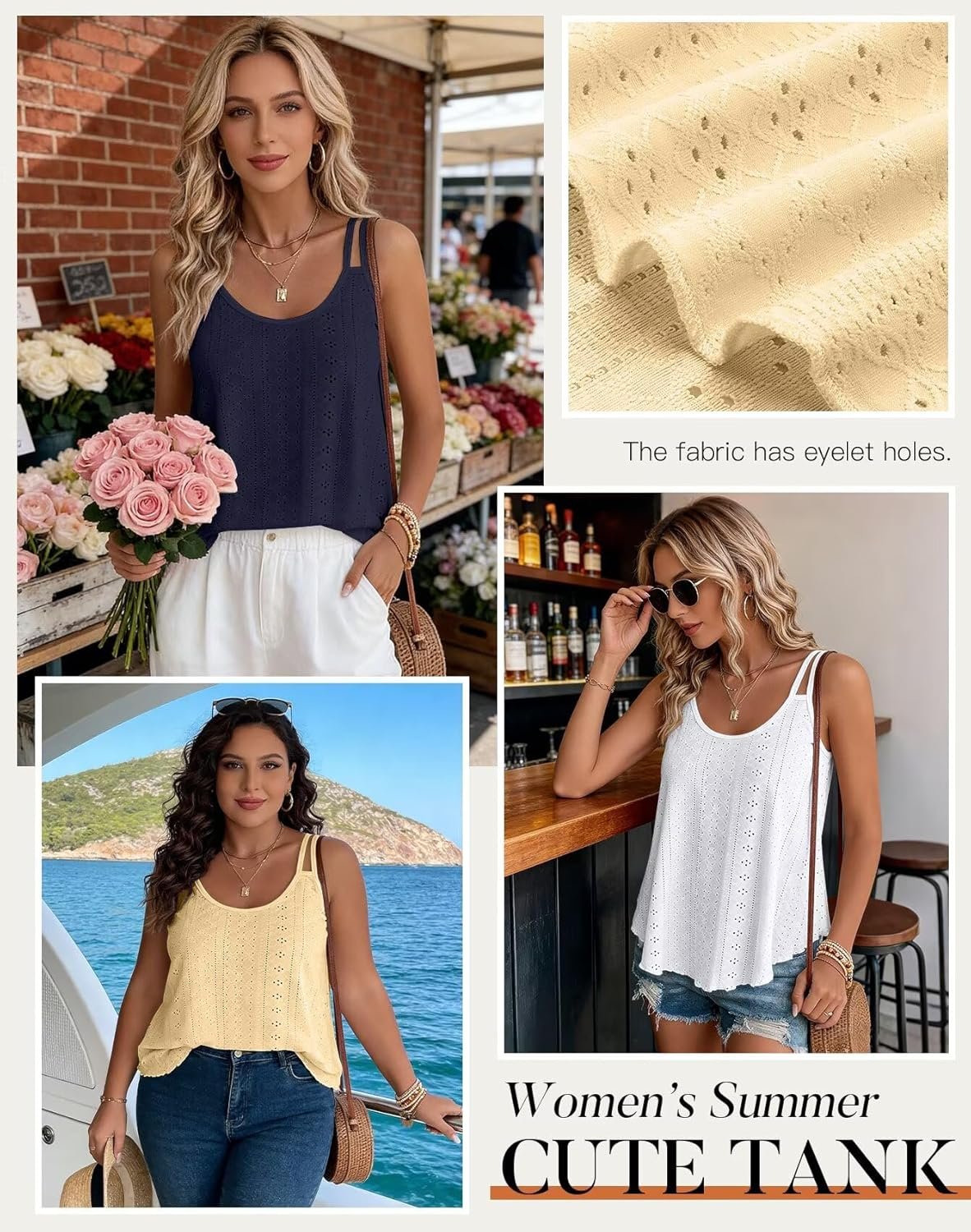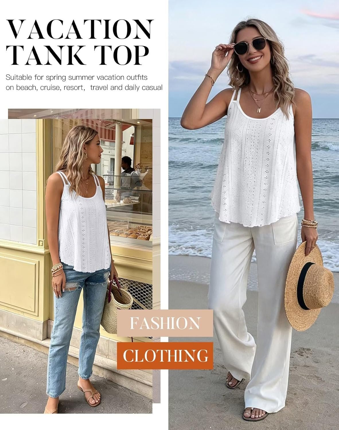 KKJ Eyelet Embroidery Solid Color Tanks Top for Women Comfy Lightweight Cami