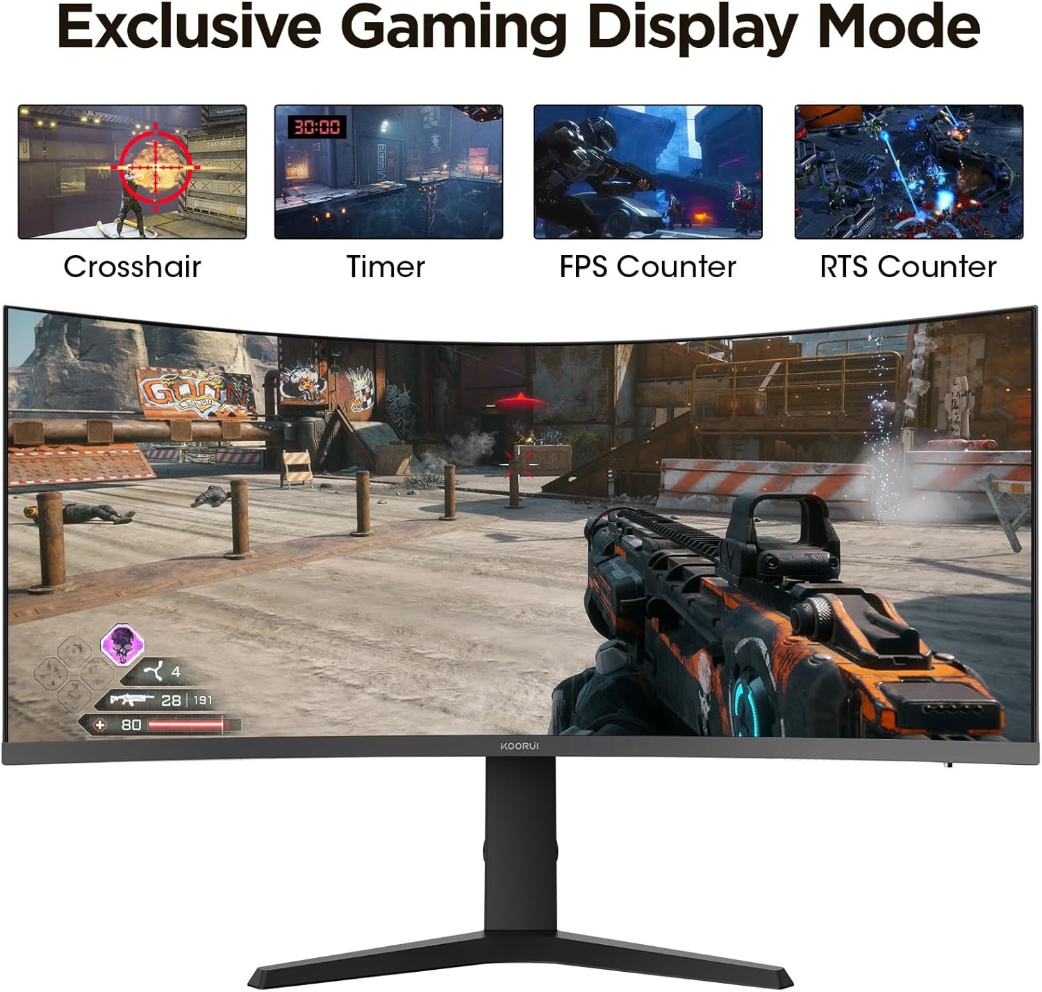 PIP PBP AND BLACK EQUALIZER: KOORUI 34e6uc have picture-in-picture and picture-by-picture modes, and black equalizer function which can enhanced visibility in dark scenes.It’s the perfect tool for work and a must-have for gaming.