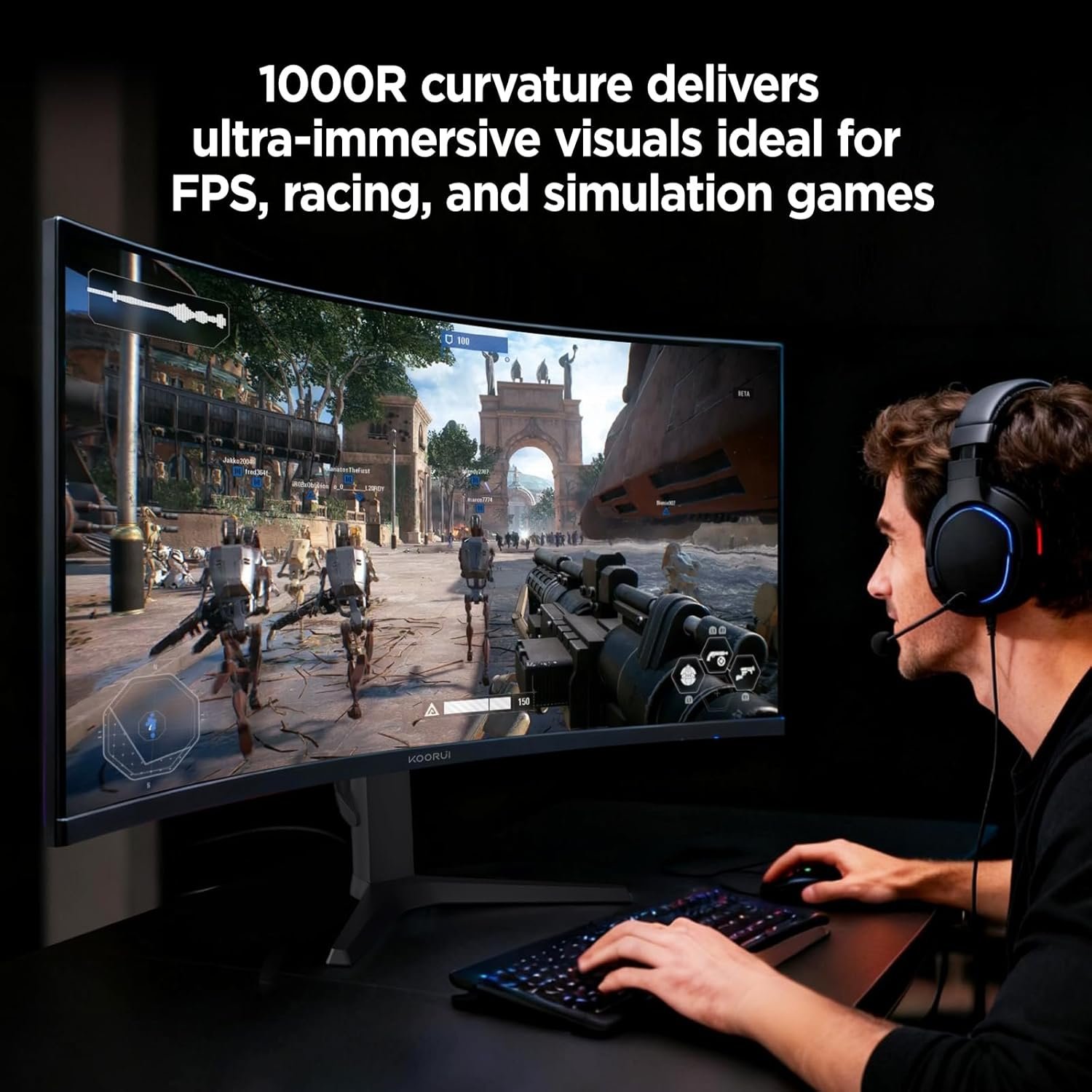 ULTRAWIDE CURVED GAMING MONITOR: The 34 inch ultrawide gaming monitor (3440×1440) with 1000R design and 21:9 aspect ratio brings a truly immersive experience that offers more realistic visuals and comfortable viewing.
