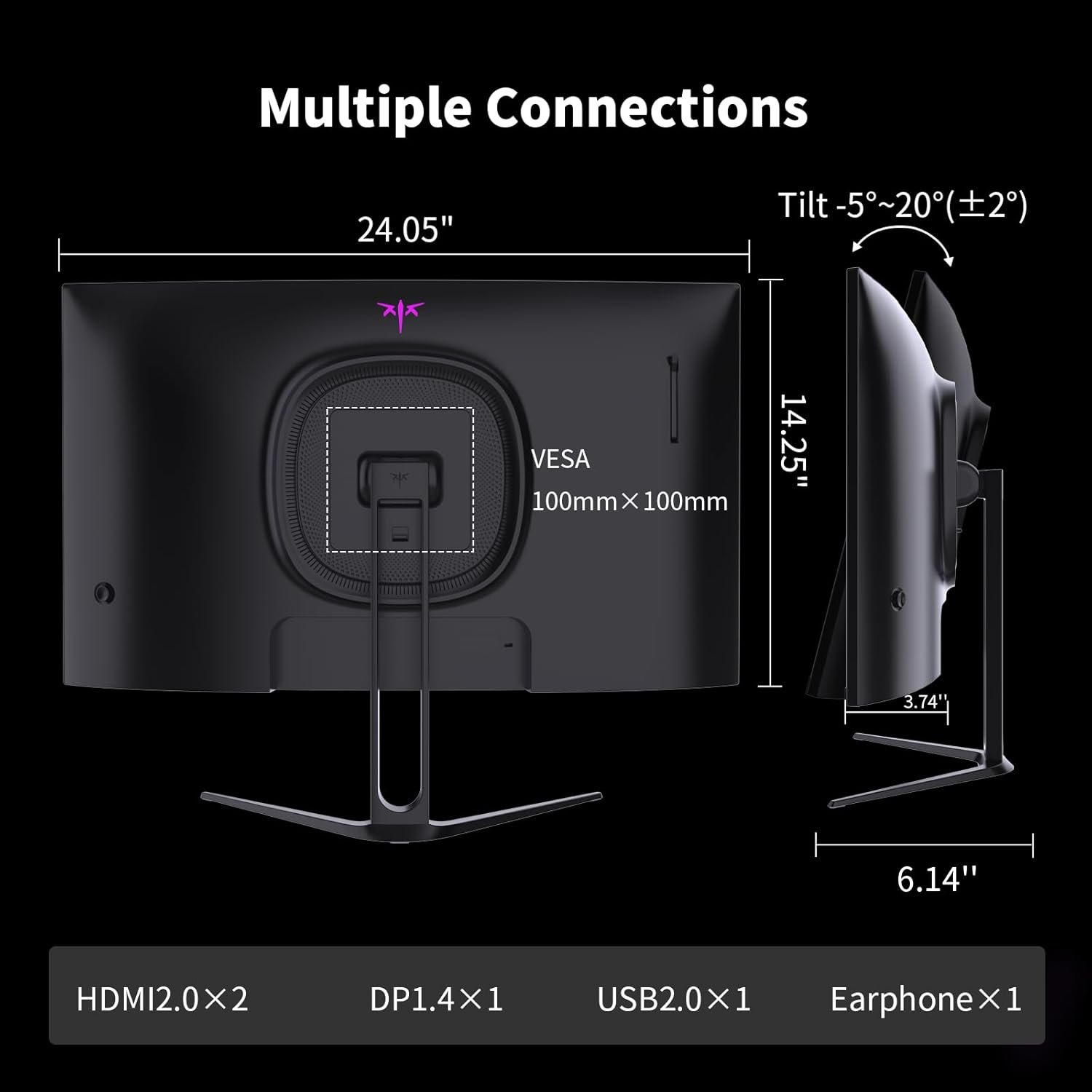 【Extensive Connectivity】With HDMI 2.0×2 and DP 1.4×1 ports, allowing connection to a variety of devices. VESA wall mounting supports and -5° to 20°tilt adjustment offers flexible setup. Low blue light and flicker-free technology effectively reduce eye strain.