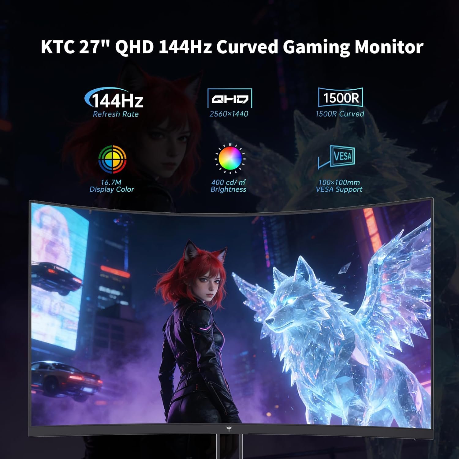 【144Hz Refresh Rate】KTC 1440p 144Hz monitor is compatible with Adaptive-Sync technology, effectively reducing screen tearing even in fast-paced games. 144Hz refresh rate delivers smoother visuals.