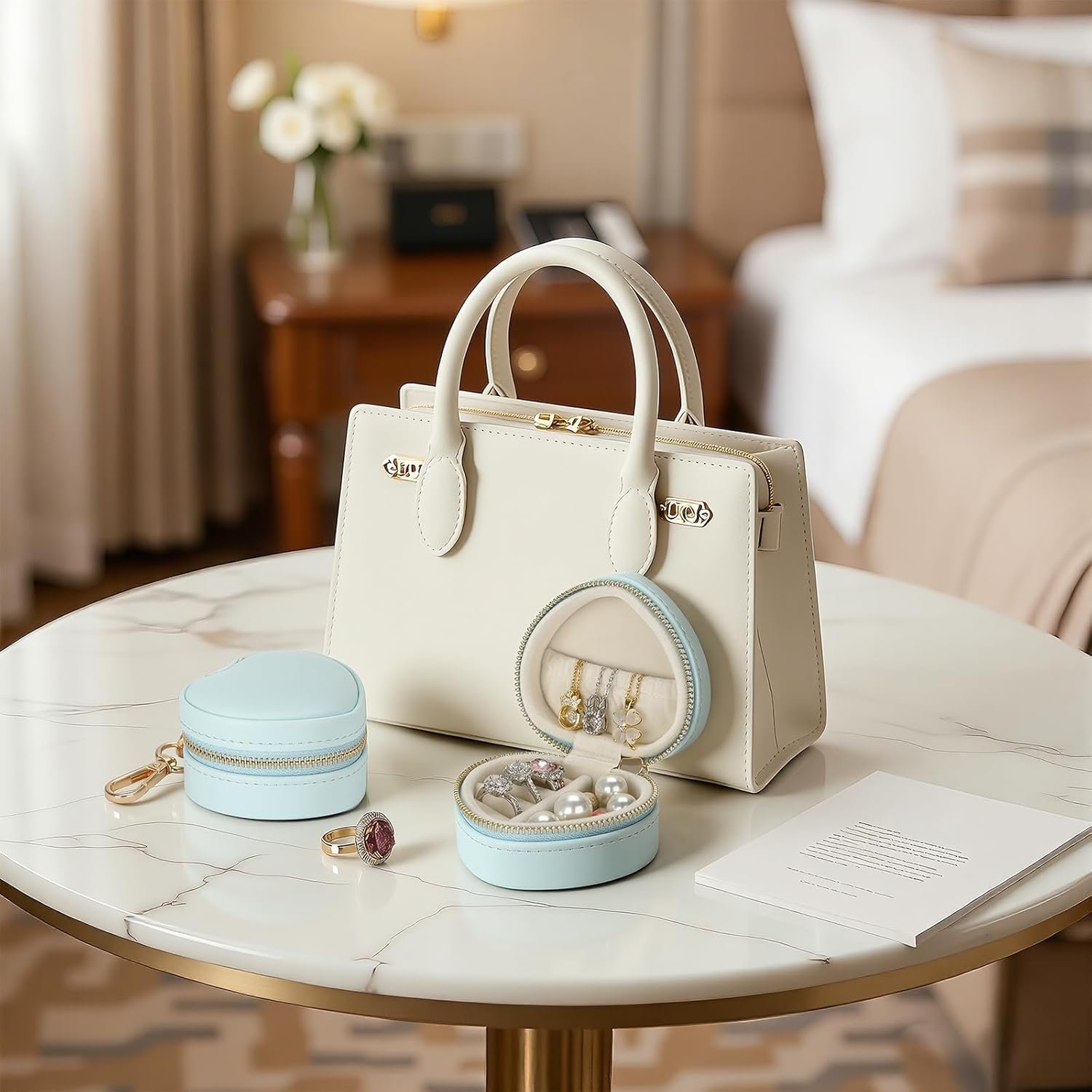 All-in-One Jewelry Organizer: Features a zippered pouch, ring rolls, and divided compartments to store rings, earrings, necklaces, bracelets, and small trinkets. No more tangled jewelry in your bag