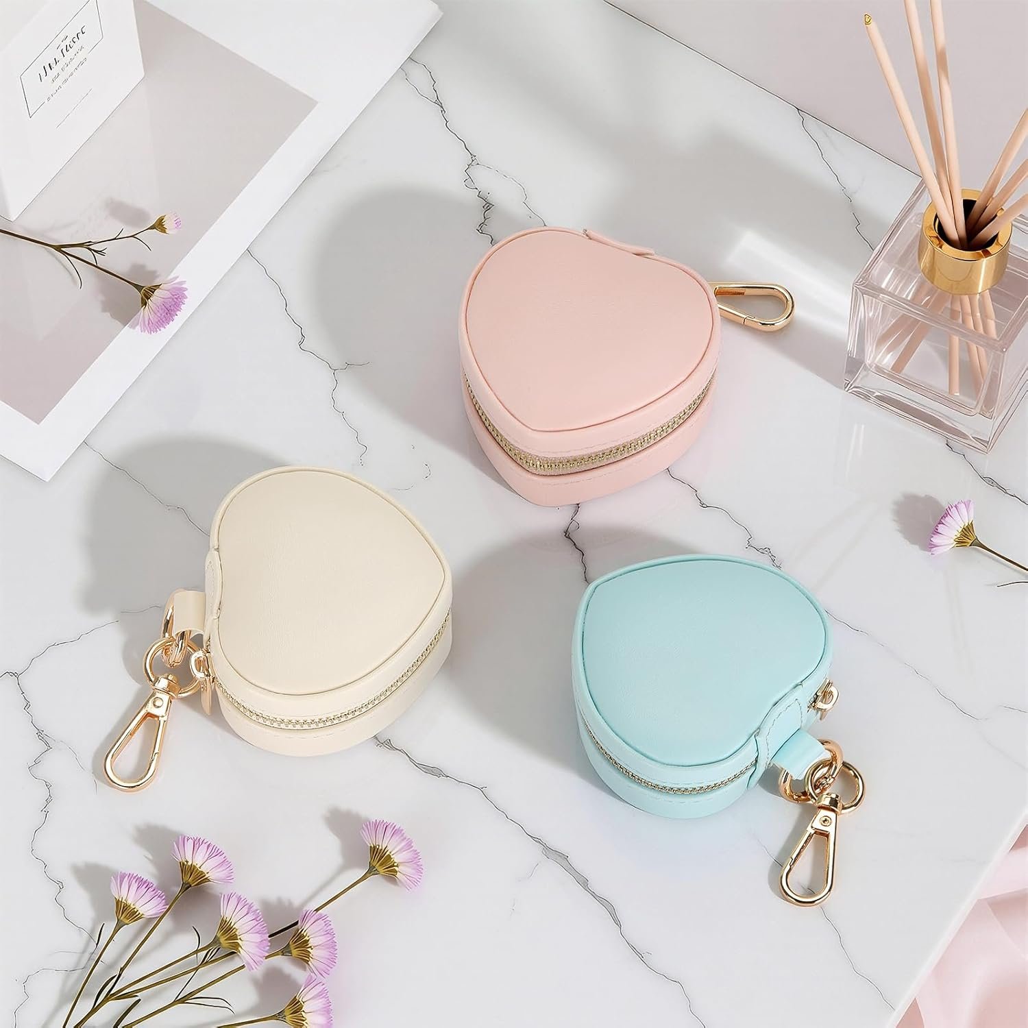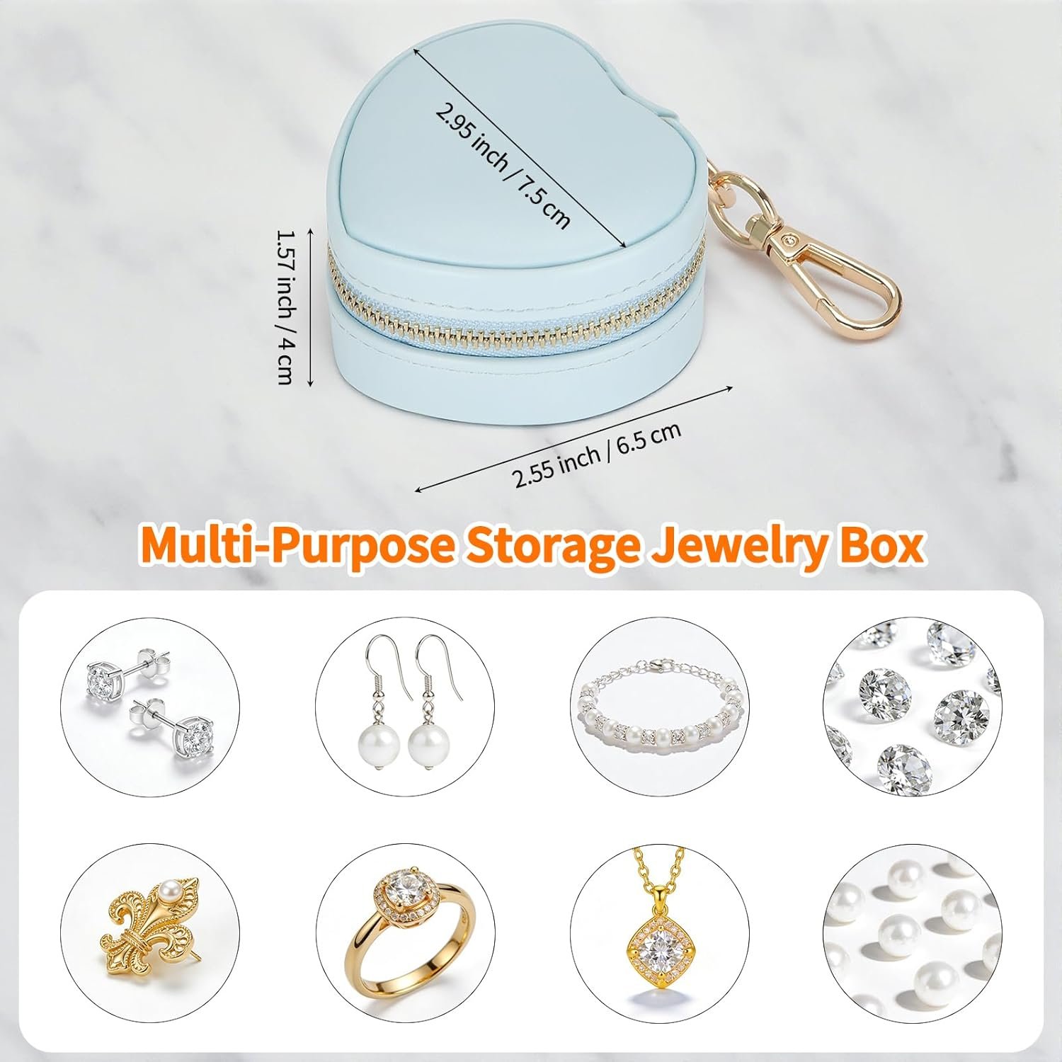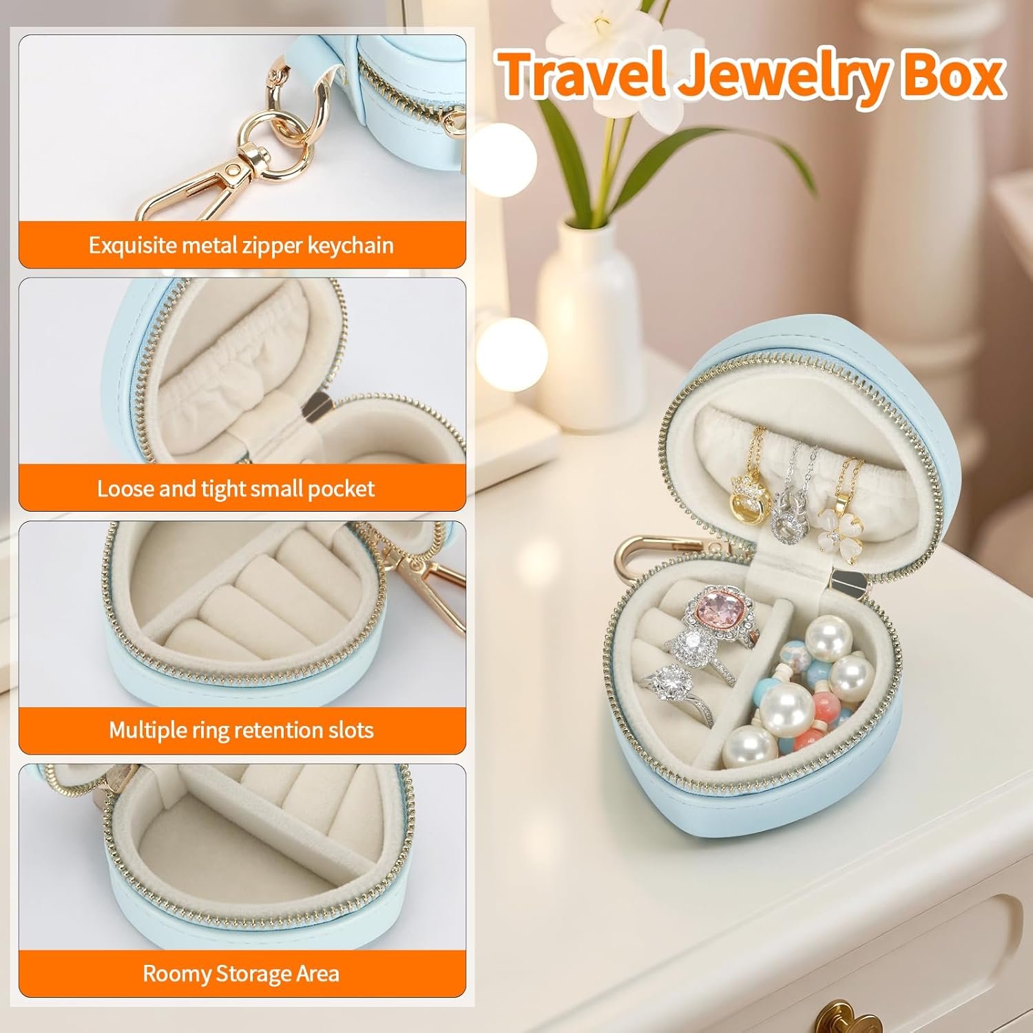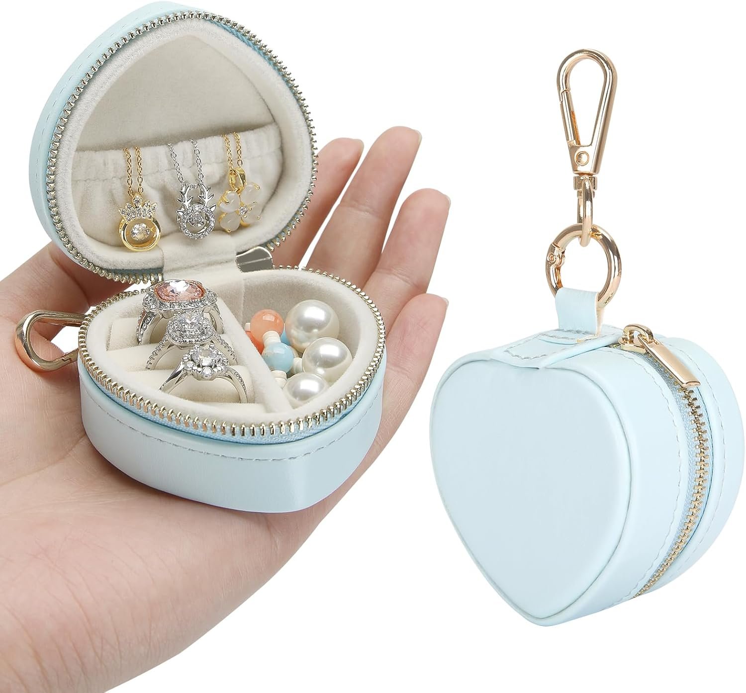 Cute & Portable Heart Design: This mini heart jewelry box is tiny (7.5*6.5*4cm/2.95*2.55*1.57inch) with a keychain, easy to clip on your bag or take to travel, gym, office, or trips. Perfect for keeping your jewelry safe on the go