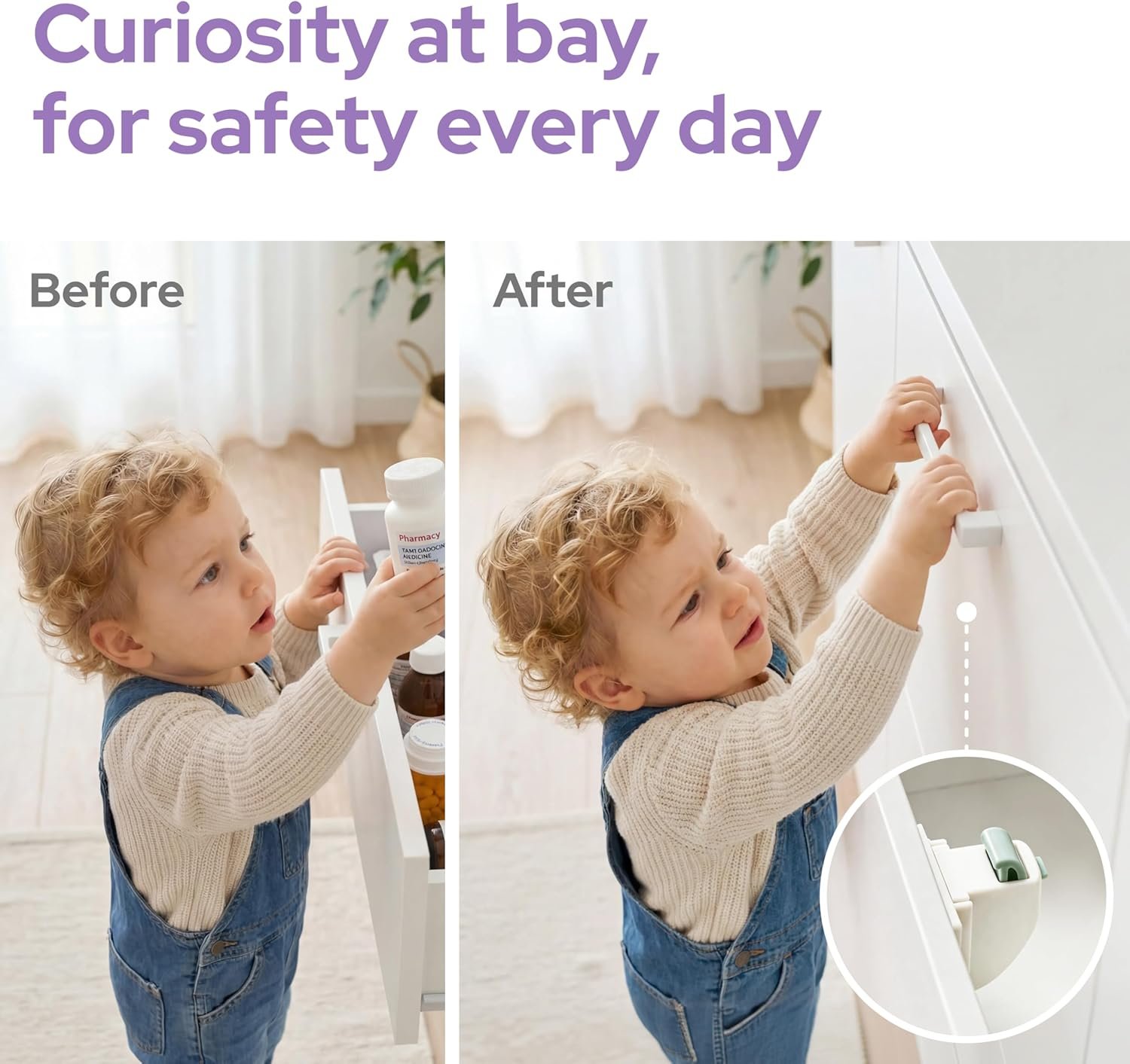 Protects Babies from Hidden Hazards: Keep little ones away from sharp tools, cleaning supplies, and choking hazards with these reliable baby locks for cabinets. Designed to reduce pinched fingers and accidents, these baby proof essentials give parents peace of mind