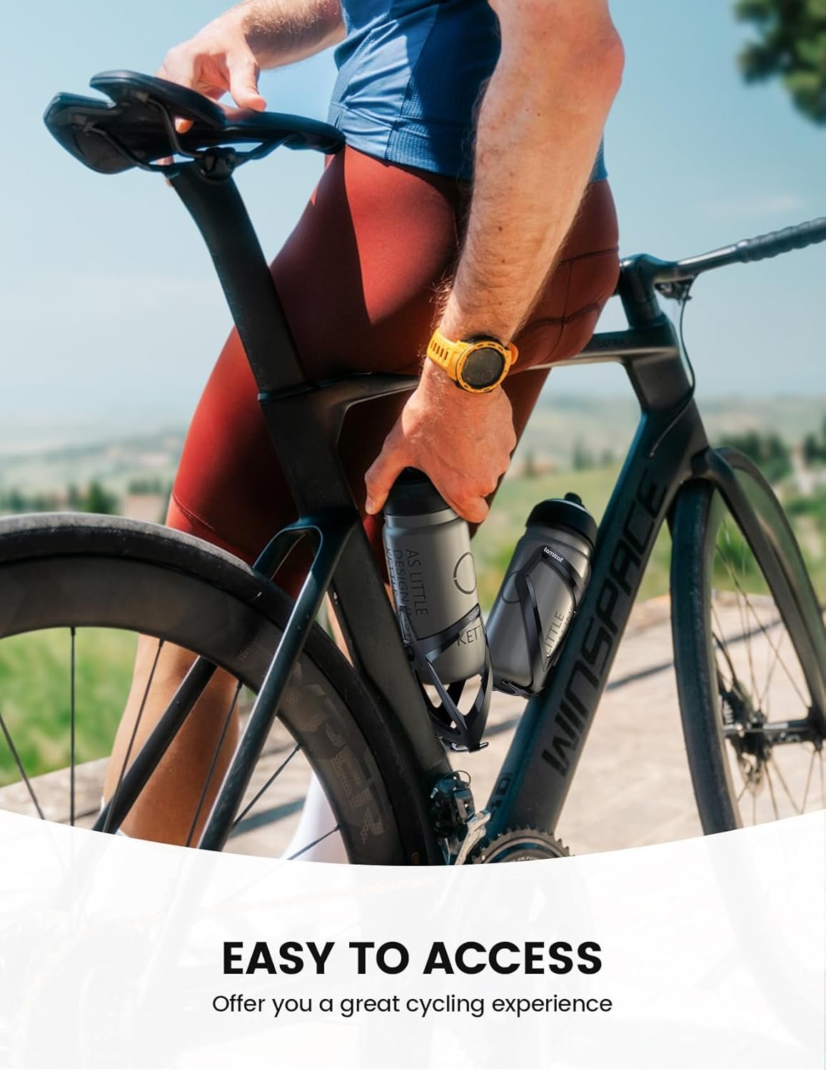 【 Great Bike Accessories】 This bike water holder is a good bike accessory that is perfect for long-distance rides, training sessions, or everyday commuting. A must-have accessory for staying hydrated and keeping your hands free while on the go.
