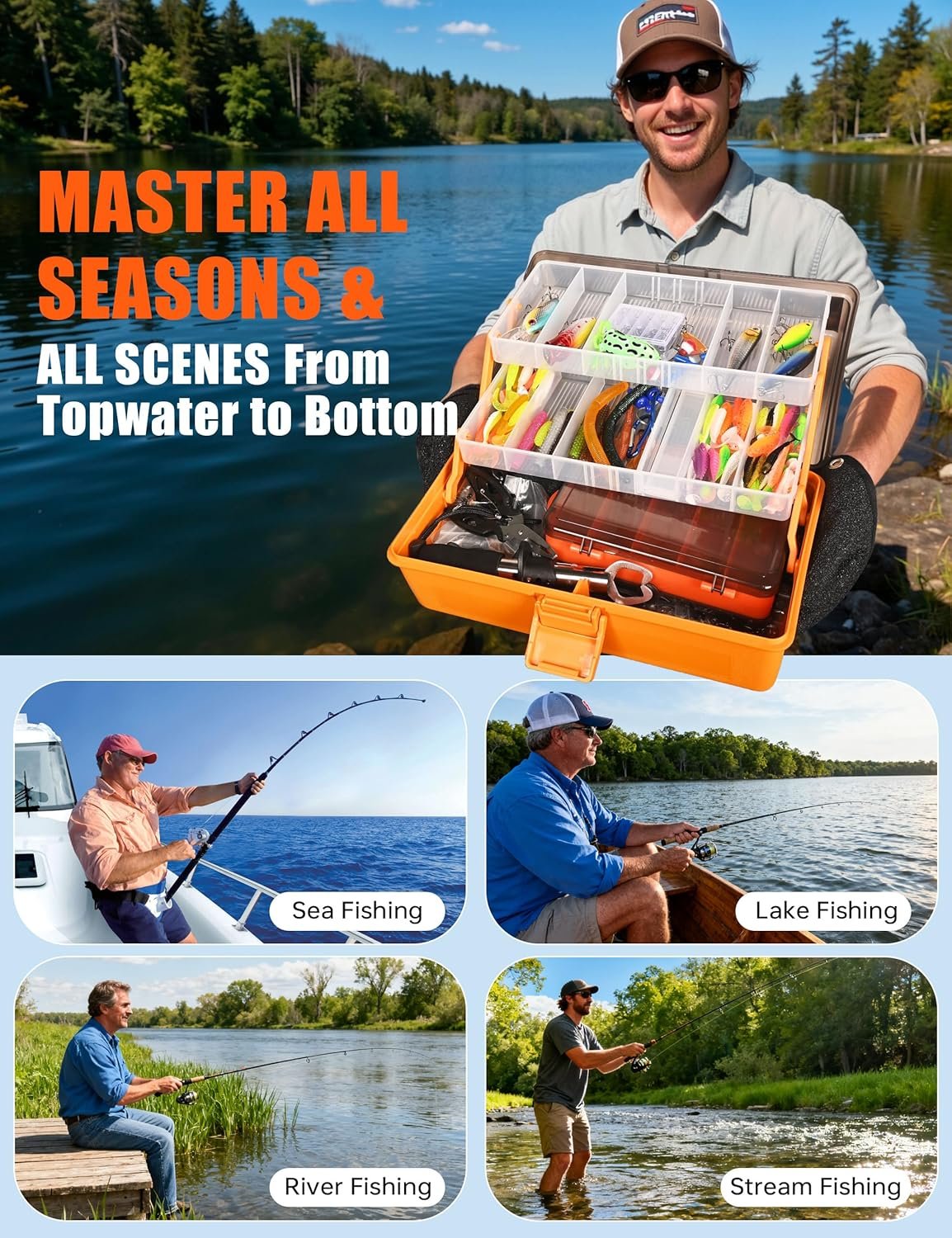 Be the first to review “Large 3-Layer Fishing Tackle Box with Tackle Included, All-in-One 417 Pcs Fishing Lures Kit with Small 2-Sided Box & Gloves for Anglers, Complete Freshwater Bass Fishing Gear, Gift for Men”