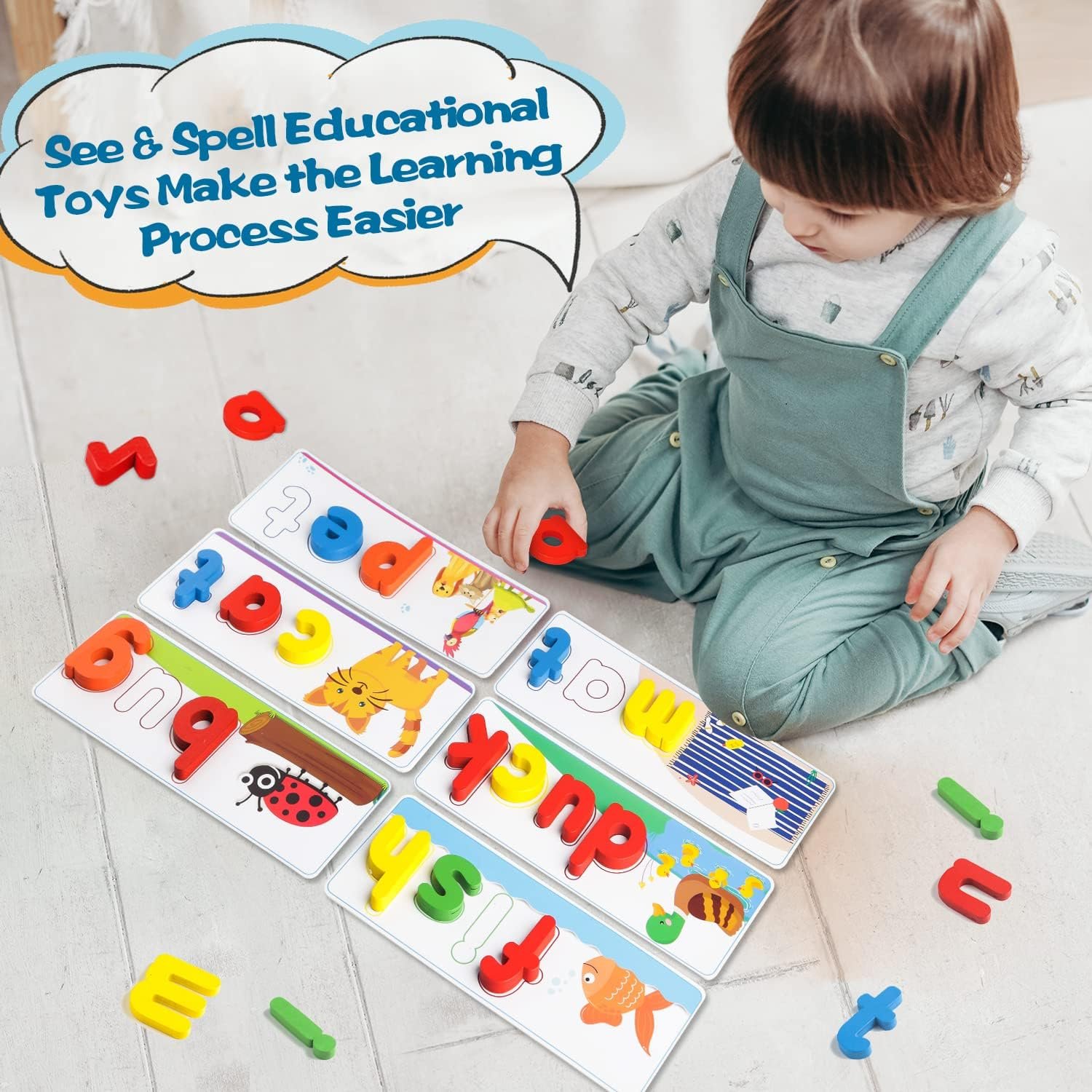 Learning Educational Toys for 2 3 4 5 6 Years Old Boys Girls, See & Spell Matching Letter Game with Alphabet Cards for Kids, Preschool CVC Word Builders Toy, Christmas Birthday Gifts for Age 2-4 4-6