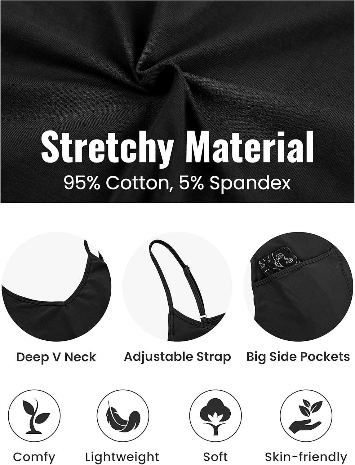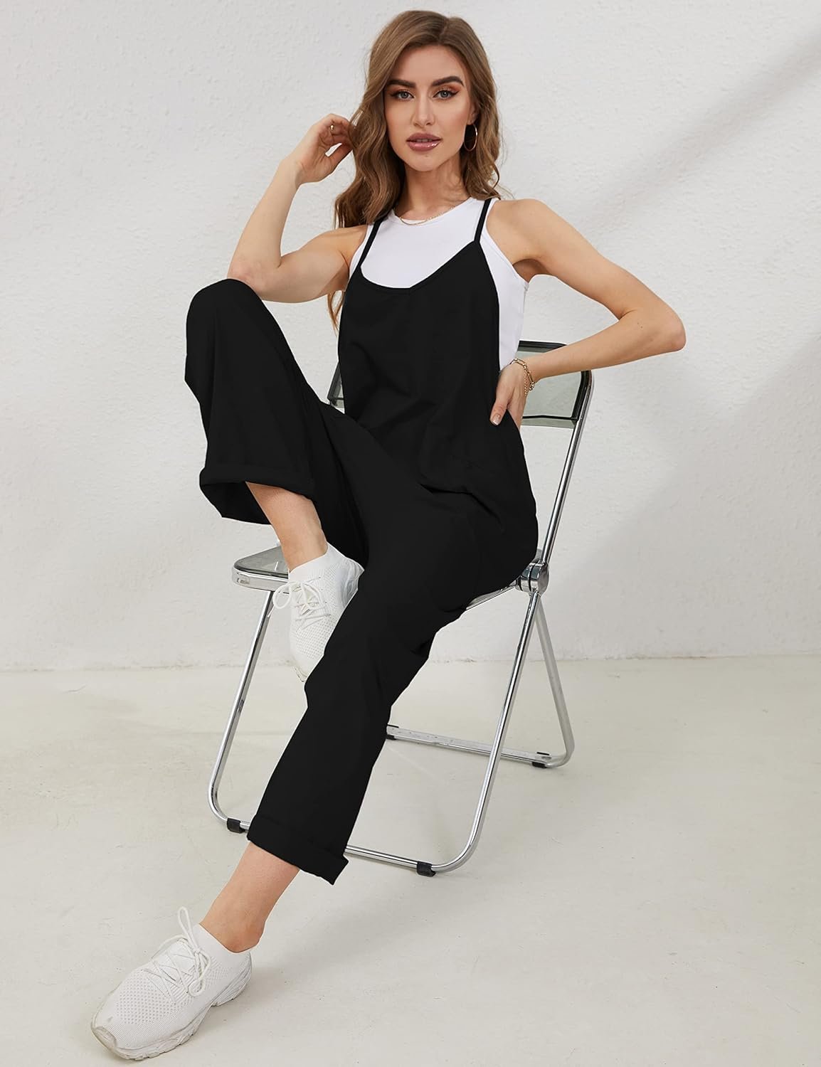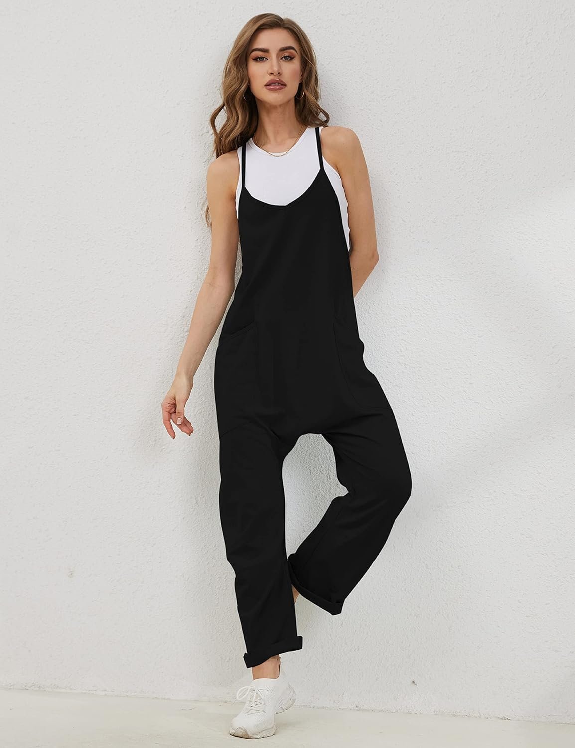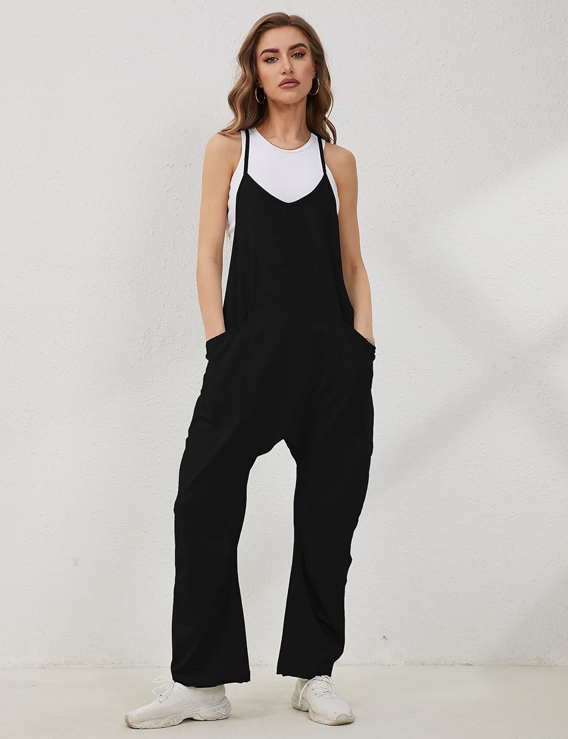 Lentta Women’s Causal Jumpsuits V Neck Sleeveless Harem Overalls Stretchy Adjustable Strap Romper with Pockets
