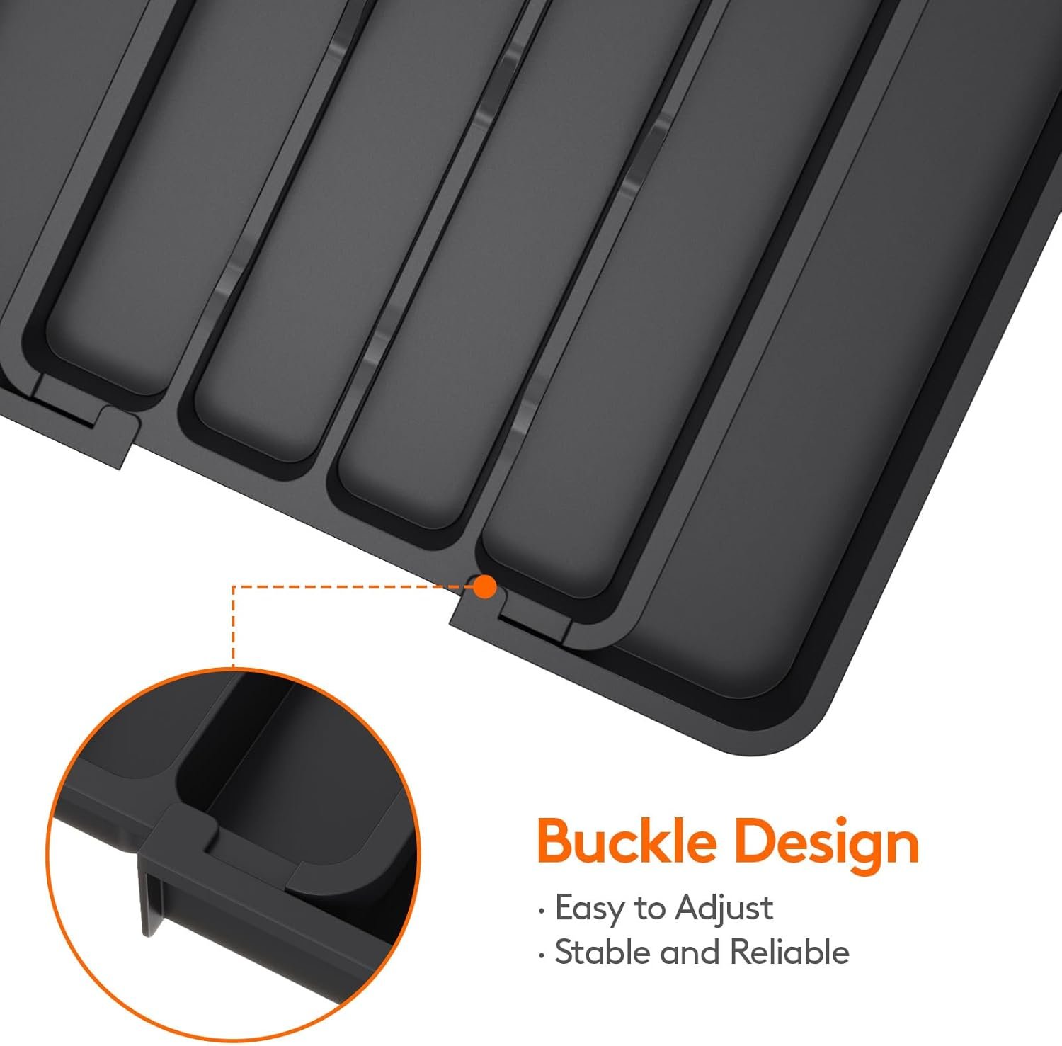 Thoughtful Design: Unique groove design for easy access to cutlery; The buckle design ensures smooth sliding and effortless adjustment, preventing partition displacement. Lifewit utensil holders bring seamless order to your kitchen!