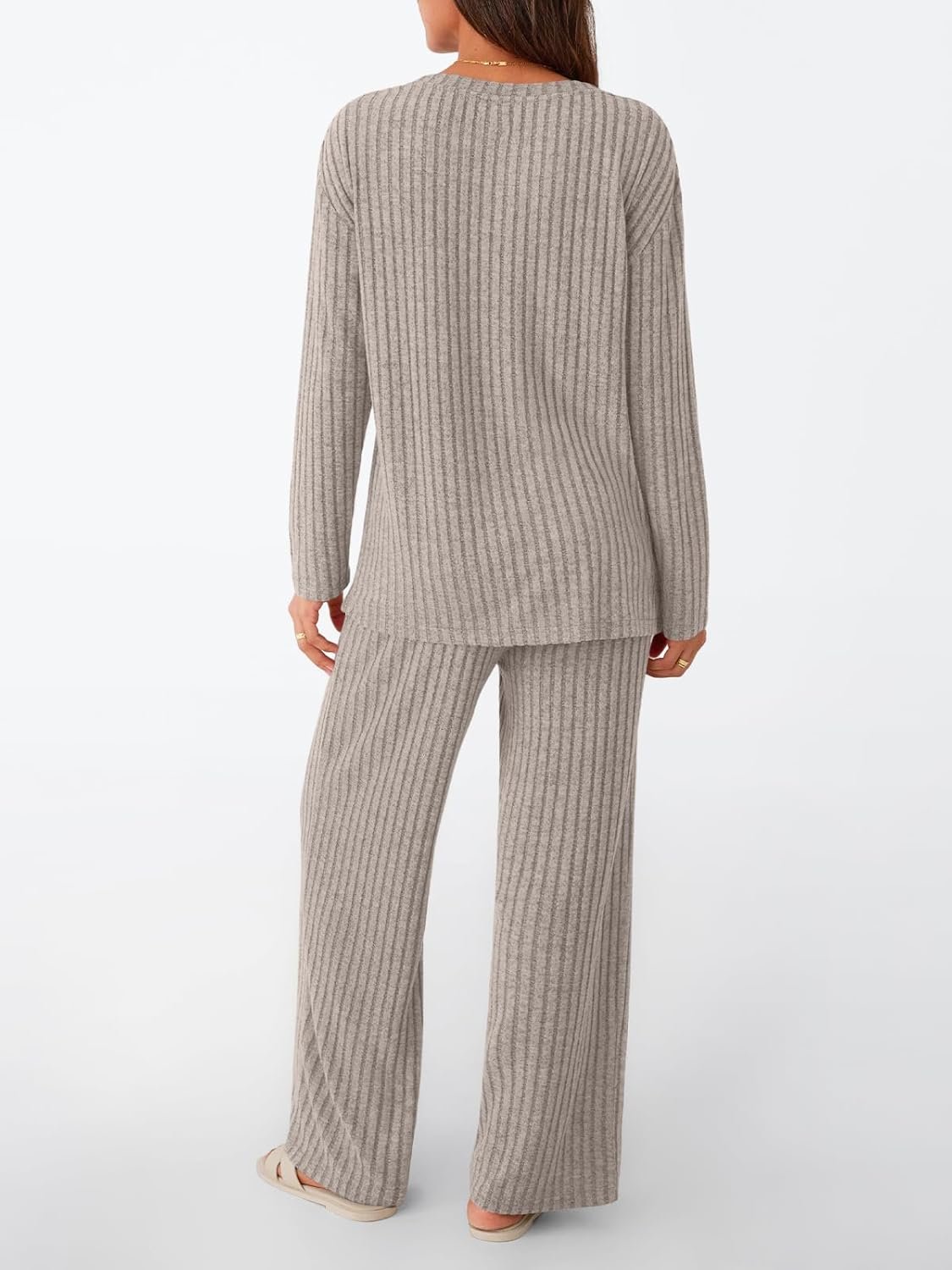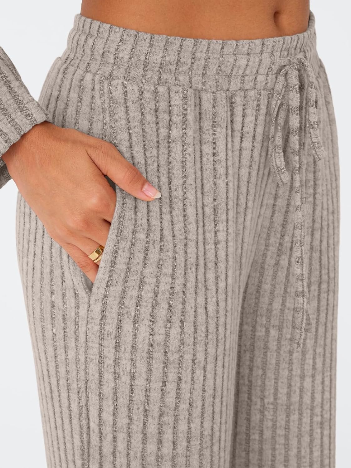 LILLUSORY Womens Lounge Sets 2 Piece Matching Pajamas Fall Fashion 2026 Ribbed Knit Outfits Long Sleeve Casual Sweatsuits