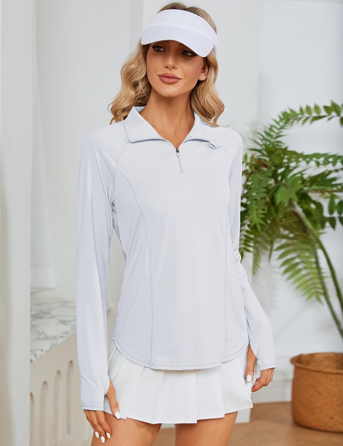 LOMON Women Long Sleeve Shirts Sun Protection 1/4 Zip Summer Quick Dry Hiking Shirts Quarter Zip Pullover for Women