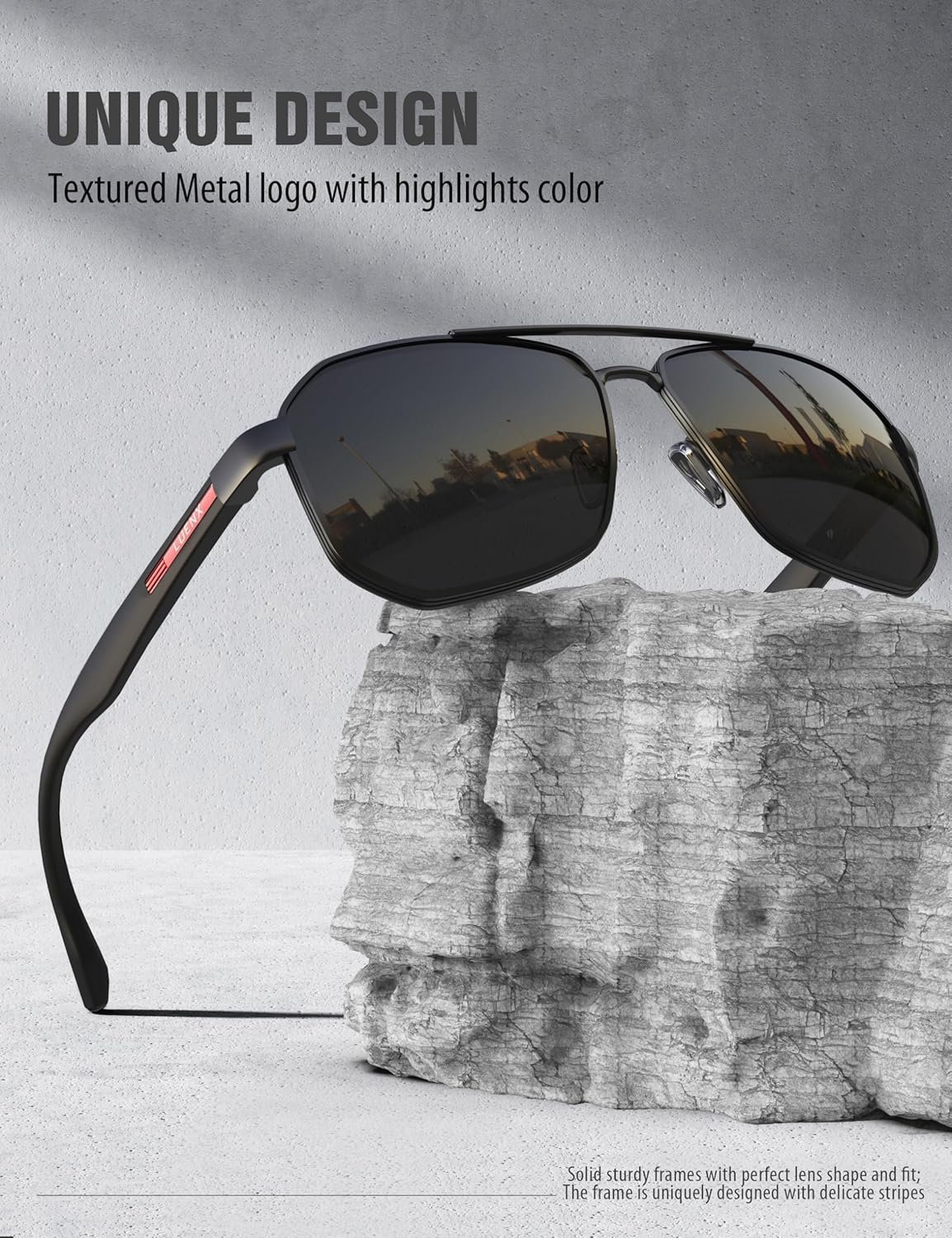 LUENX Aviator Sunglasses for Men Square Polarized Polygon Lens – UV 400 Protection with Accessories Driving Outdoor