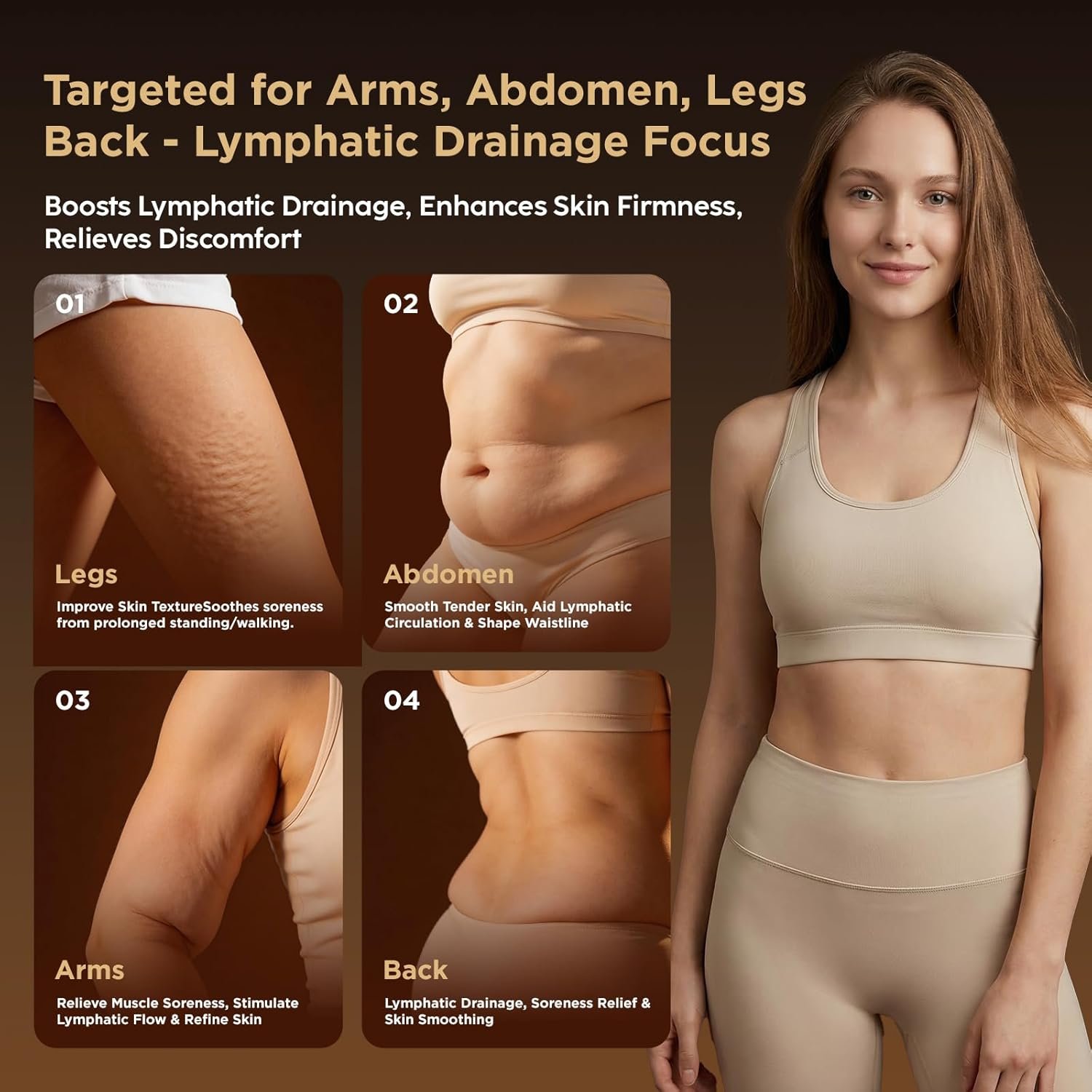 Lymphatic Drainage Massager & Anti-Cellulite Massage Tool, Body Sculpting Device for Legs, Arms & Stomach, Supports Smoother Skin, with Gentle Warming & Vibration – Gold