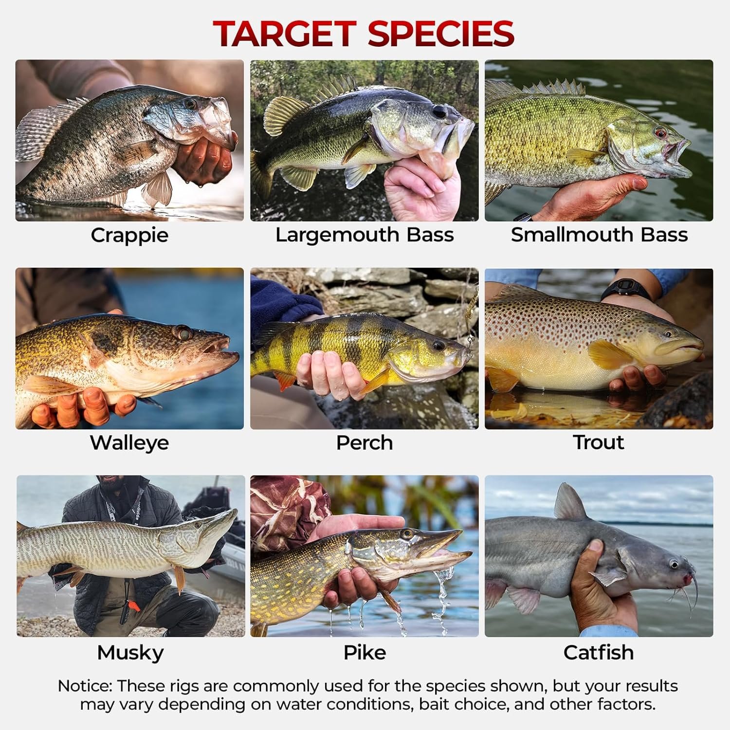 Build 19+ Proven Rigs With Confidence: This all-in-one kit includes hooks, swivels, sinker stops, bobber stoppers, and more, allowing anglers to create over 19 of the most effective freshwater rigs like Texas Rig, Carolina Rig, Wacky Rig, and Drop Shot. Perfect for targeting bass, trout, crappie, and other species in any fishing scenario