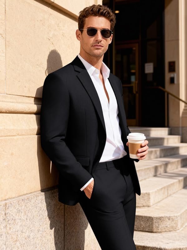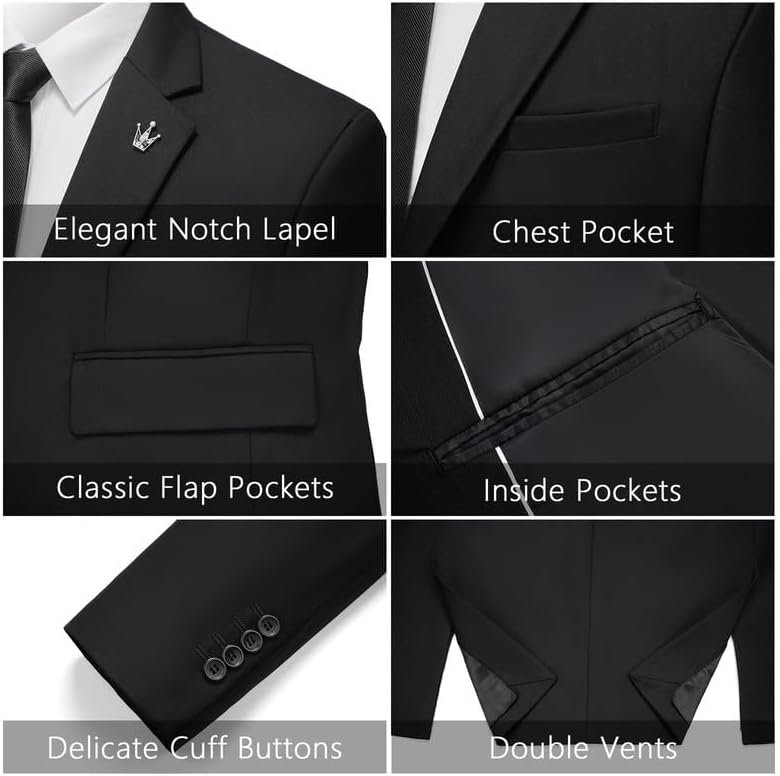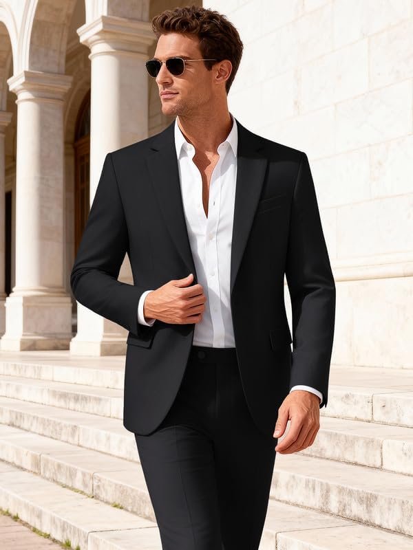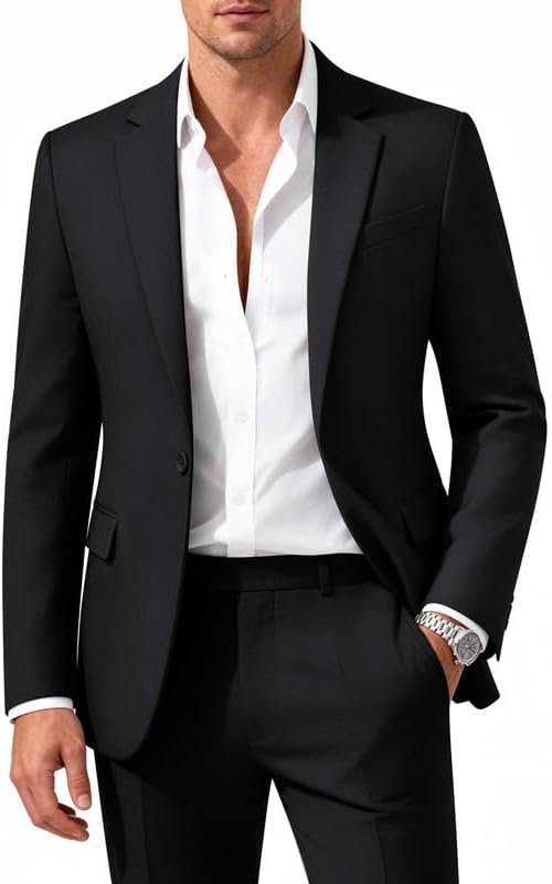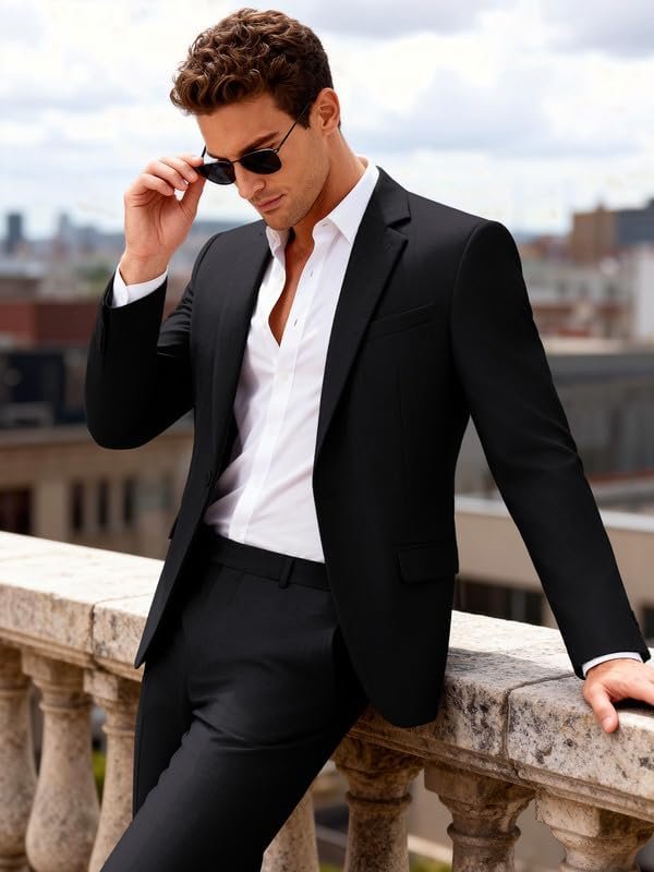 MAGE MALE Mens 2 Piece Suit Slim Fit Solid Wedding Prom Tuxedo Suit with One Button Notch Lapel Blazer and Pants
