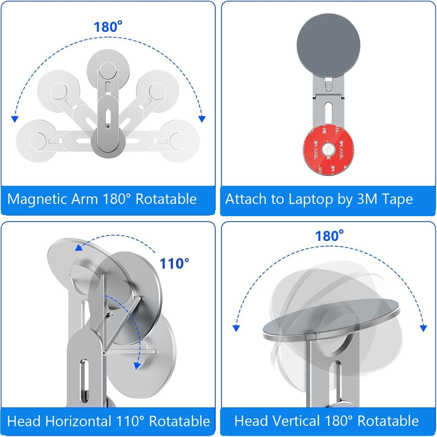 Magnetic Phone Holder for Laptop, MagSafe Laptop Phone Mount for iPhone 17/16/15/14/13/12 & All Phones, 180°Adjustable Magnetic Phone Holder for Tesla Monitor (Gray)