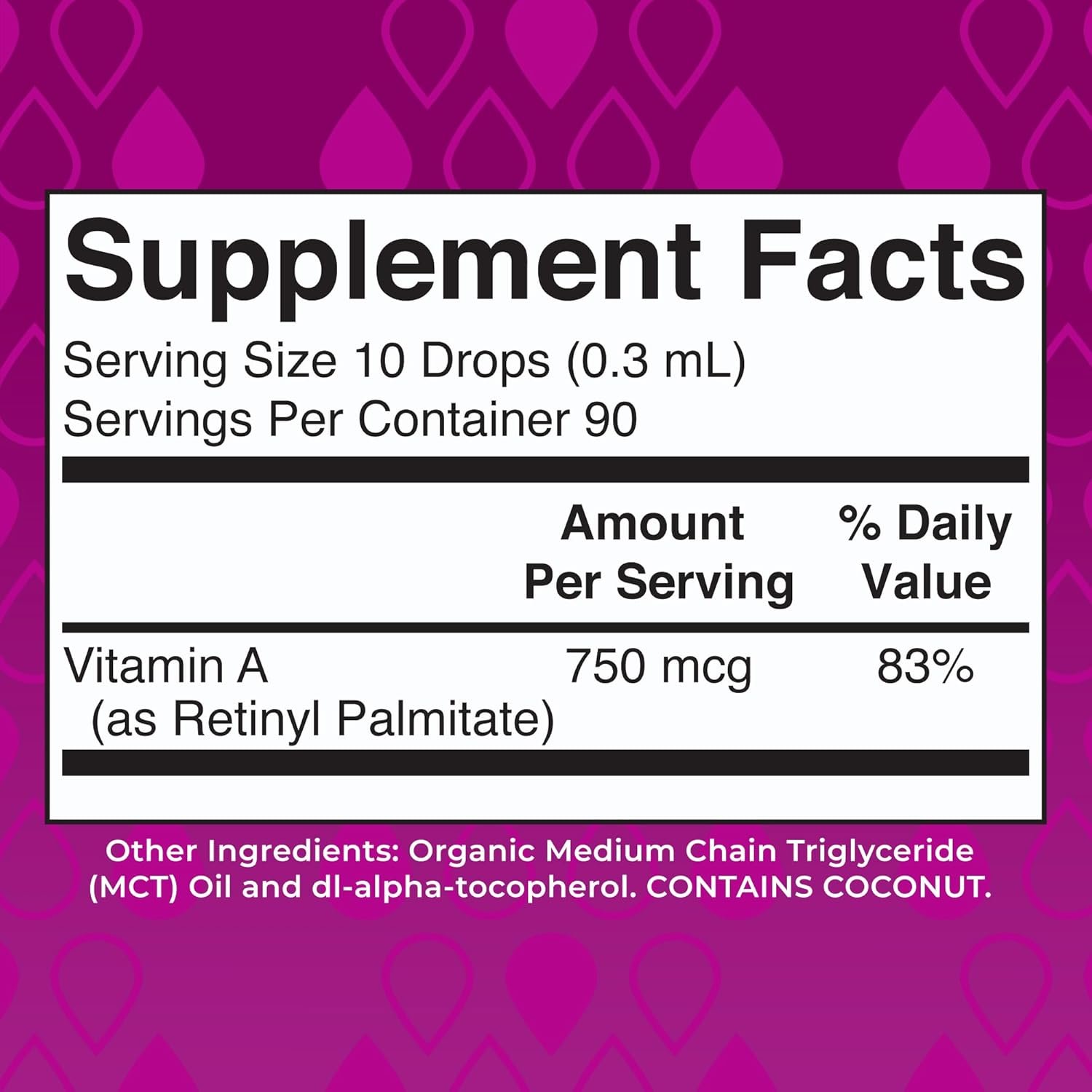 Easy-to-Take Liquid Format: With vitamin A in easy-to-take liquid form, you can simply take it by mouth, add it to a glass of water, your favorite morning juice, or a smoothie!