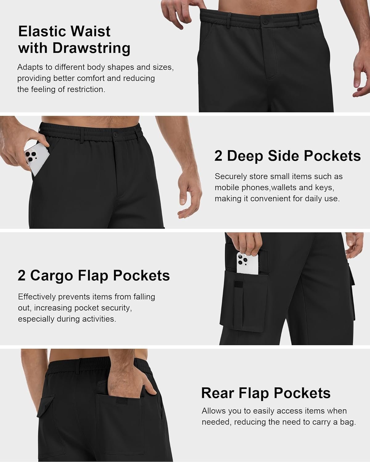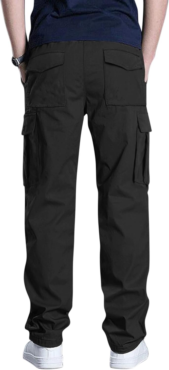 Men’s Cargo Pants Stretch Sweatpants Elastic Drawstring Casual Workout Joggers Hiking Tactical Pants with 6 Pockets