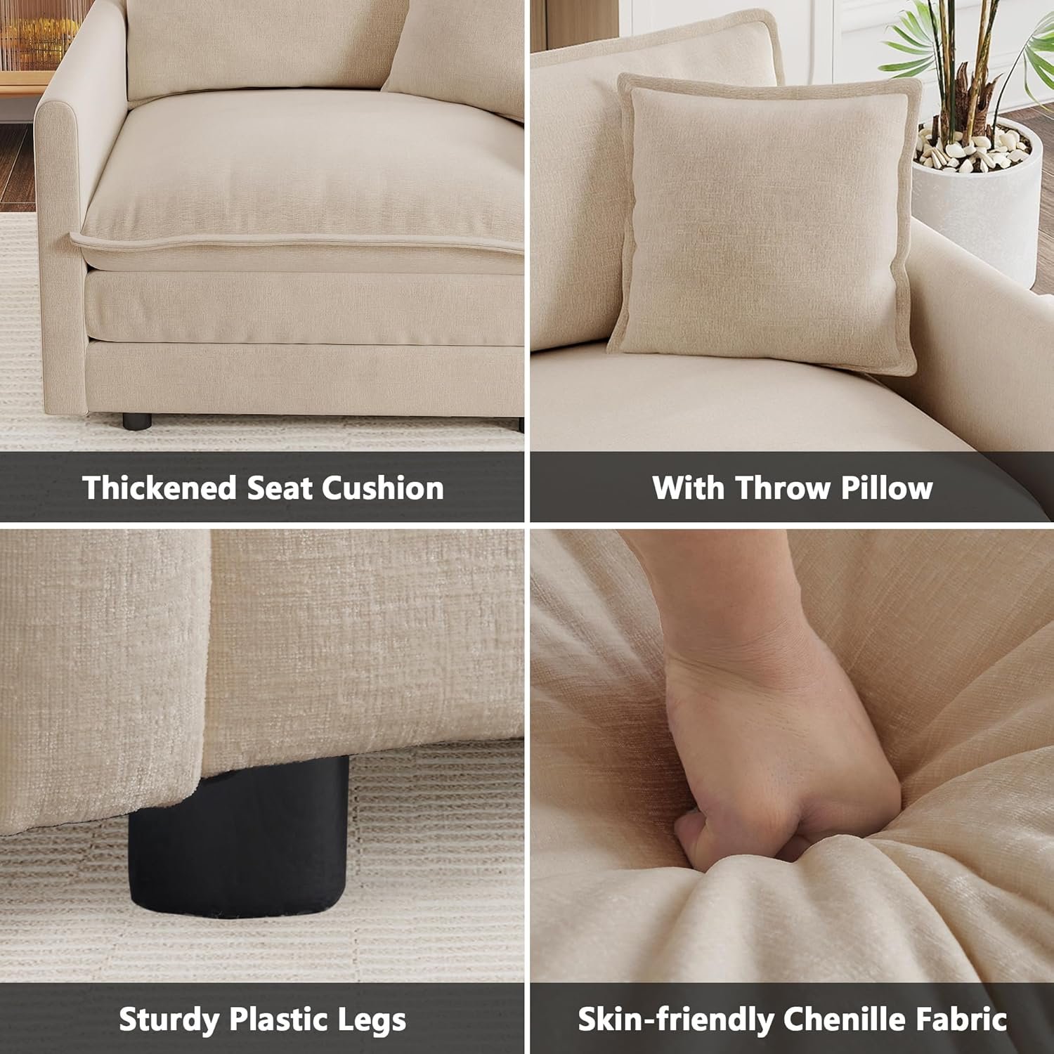 【Spacious Furniture】:Sturdy solid wood frame, high-end breathable chenille fabric, filled with high-quality sponge, making this modular sectional sofa beautiful and comfortable, it can be a perfect match for your living room, bedroom, home office, etc.