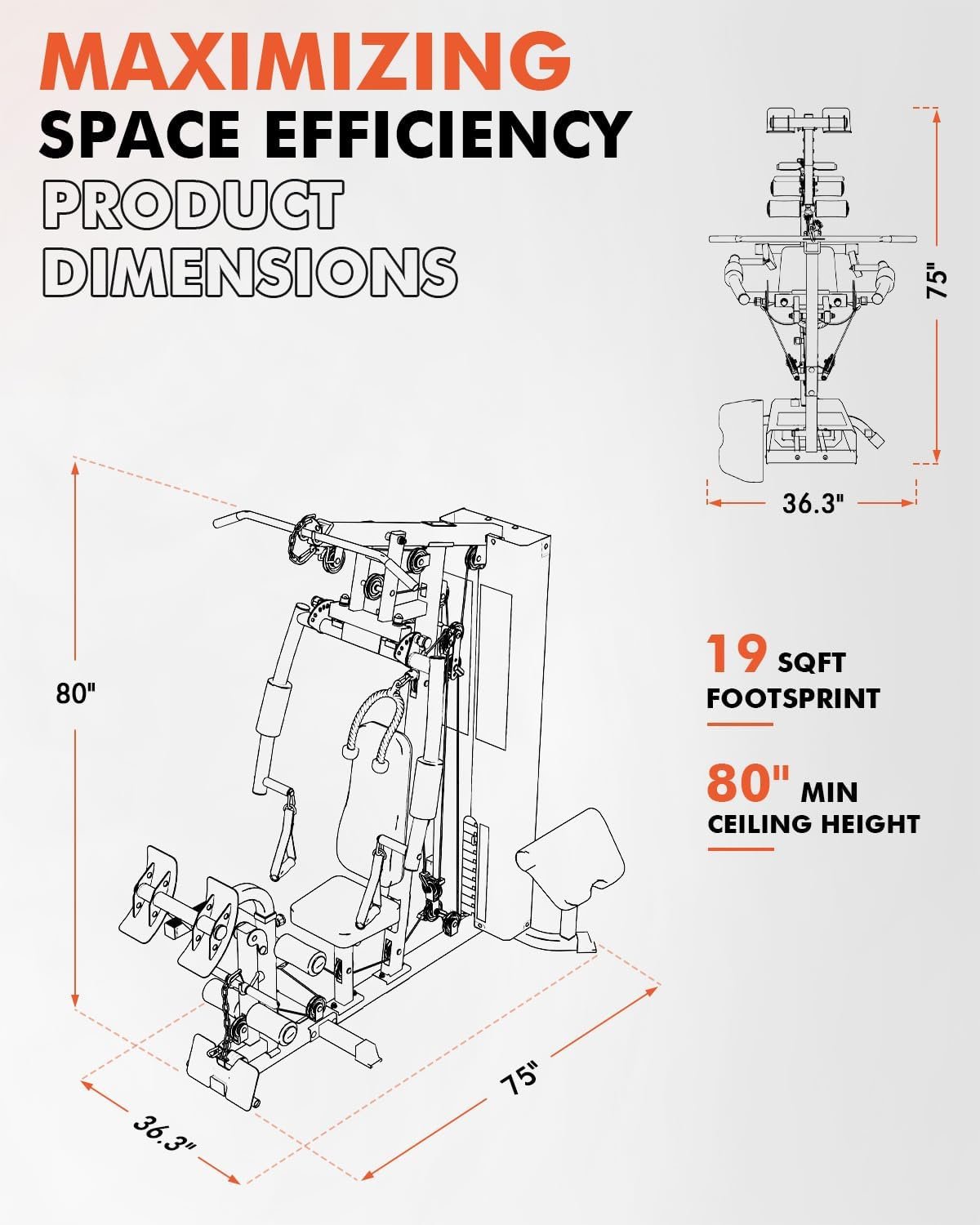 Mikolo Home Gym, Workout Station with 150LBS Weight Stack, Multifunctional Home Gym Equipment, Exercise Equipment for Full Body Strength Training