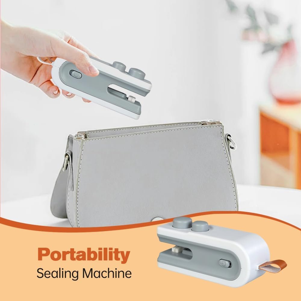 2025 New Mini Bag Sealer with Magnet, Upgrade 2 in 1 USB Rechargeable Chip Bag Sealer Heat Seal Tool, Portable Heat Vacuum Sealers Food Sealer Bag Sealing Machine for Plastic Bags Snack Bag
