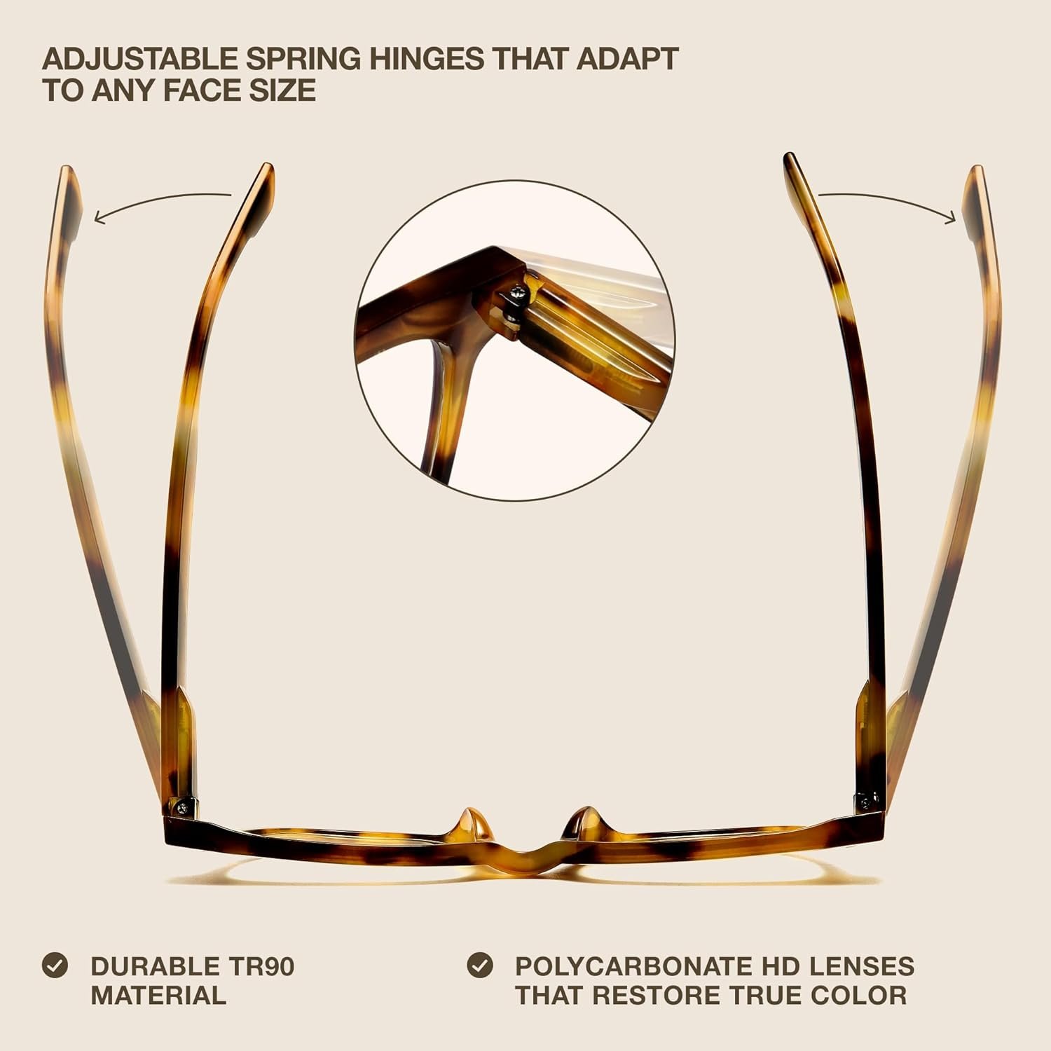 LIGHTWEIGHT: These blue blockers glasses for women feature a stylish lightweight frame, so they’re a great addition to any outfit. Perfect as non prescription glasses for women, these blue light glasses for woman big frame are a perfect christmas gifts for women. The glasses for computer eye strain feature polycarbonate HD lenses, which are anti-reflective.