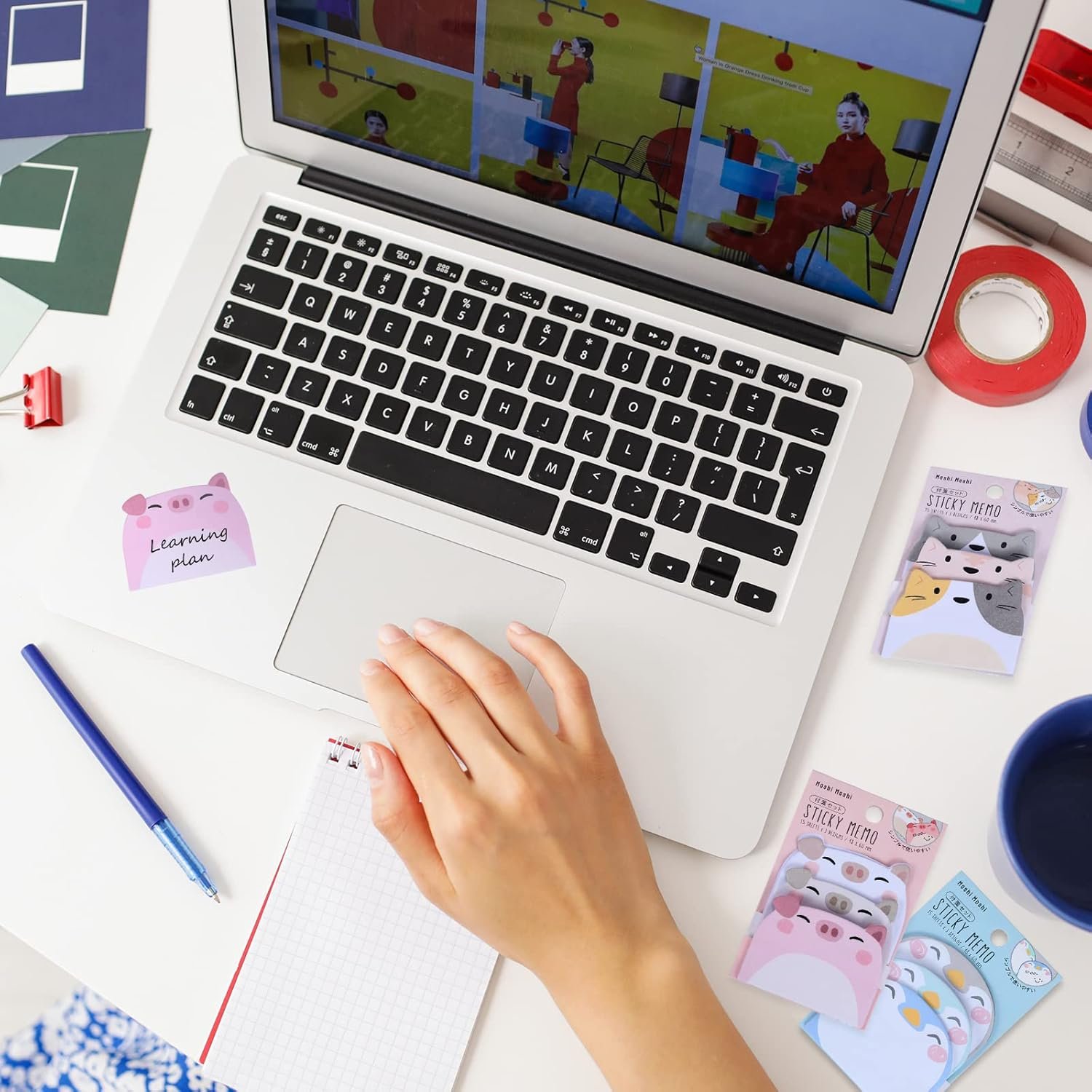 Molain Cute Sticky Notes, 6 Pack Cartoon Sticky Notes Animals Shape Markers Flags Self-Stick Memo Pads Students Home Office Roommates Gifts Tab Supplies 270 Sheets