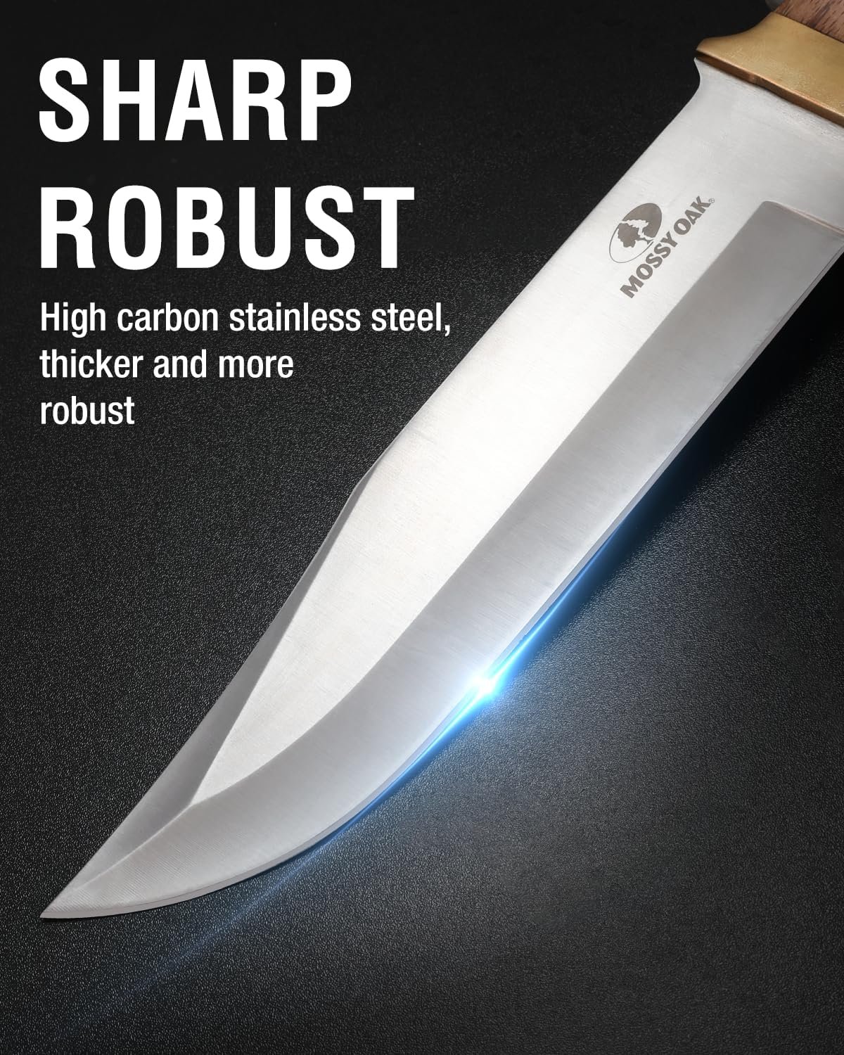 Mossy Oak 14-inch Bowie Knife, Full-tang Fixed Blade, Wood Handle Hunting Knife with Leather Sheath for Camping, Hiking, Survival